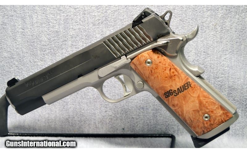 Description: SIG Sauer 1911 in 45 Auto. This is a beautiful firearm in great condition with slight handling marks. The wooden grips are gorgeous. This comes with an extra magazine and the original hard case. .45 Auto SOLD Metal Condition: Very good. Some slight handling marks. Wood Condition: Very good Bore Condition: Excellent Barrels: 5 Triggers: Factory Weight: 2.5 lbs Item Location: Cheektowaga, NY |
