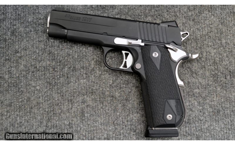 Description: For your consideration, a SIG Sauer 1911 chambered in .45 Auto. With its distinctive stainless controls and bobbed mainspring mousing and grip frame, this is an example of SIG's 1911 Fastback Nightmare Carry model. Sighting consists of a set of Novak profile, 3-dot, tritium SIGlite night sights. Construction is all-stainless with Nitron surface treatment. .45 Auto SOLD Metal Condition: Excellent Wood Condition: Excellent Bore Condition: Excellent Barrels: 4.25 Triggers: Serrated Face Weight: 2.5 lbs Sights: Iron Sights Item Location: Hamburg, PA |