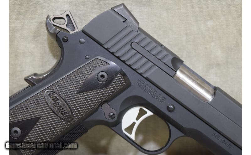 Description: SIG SAUER model 1911 is a semi-auto pistol chambered in .45 Auto in excellent condition. The SIG has a 3" barrel and overall length of 6" and comes with the Original manufacture box, 2(6) round magazines and manual. Please visit BASSPRO and search for "used guns" to utilize the ORDER ONLINE feature, or you can call our store at (586) 273-5100. .45 Auto SOLD Metal Condition: excellent Bore Condition: Excellent Barrels: 3 Weight: 2 lbs Sights: 3 White DOTS Item Location: Chesterfield, MI |