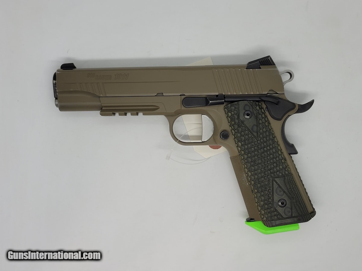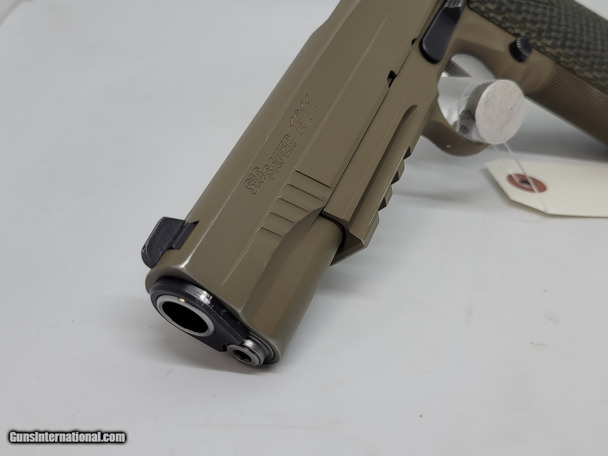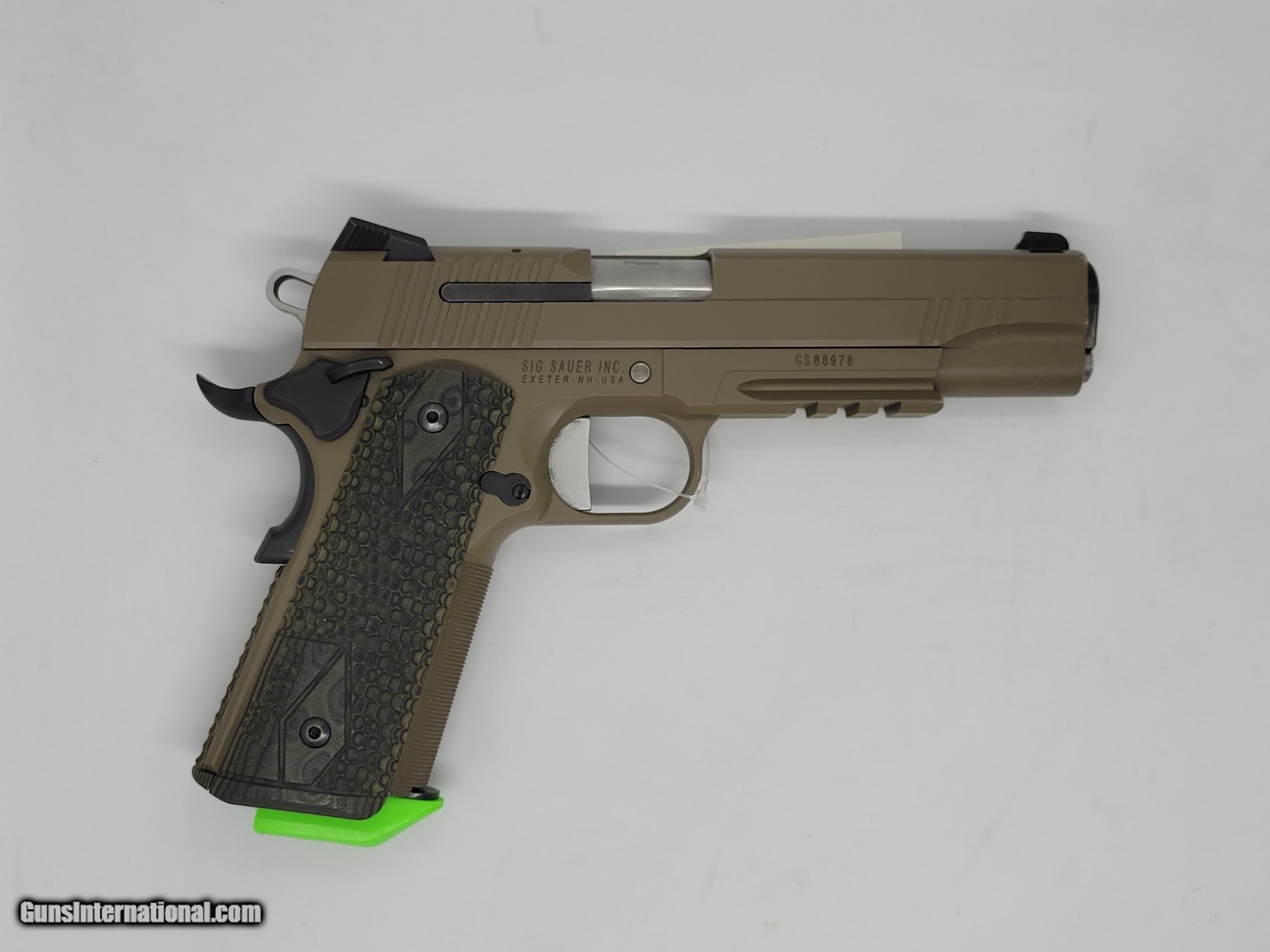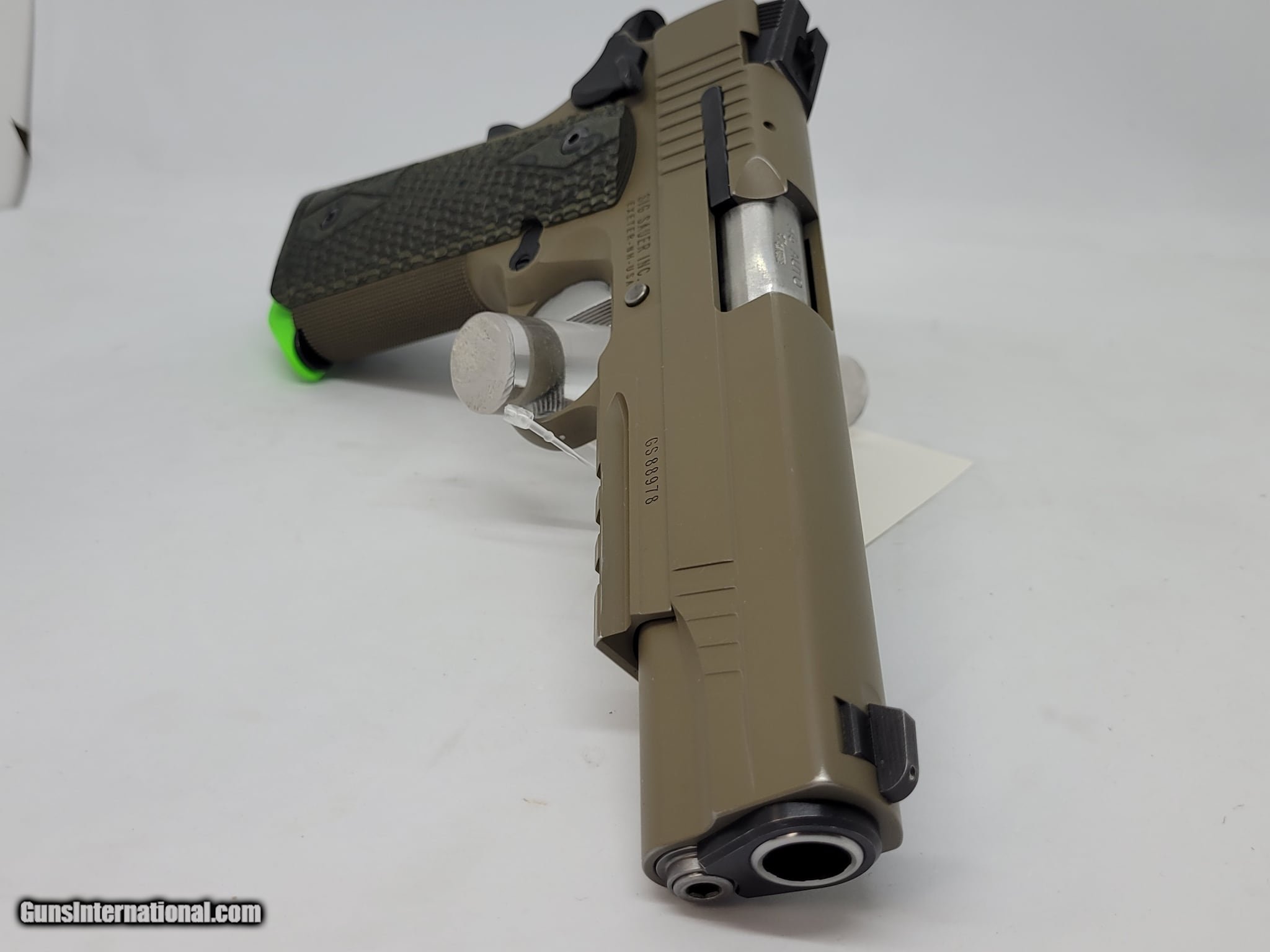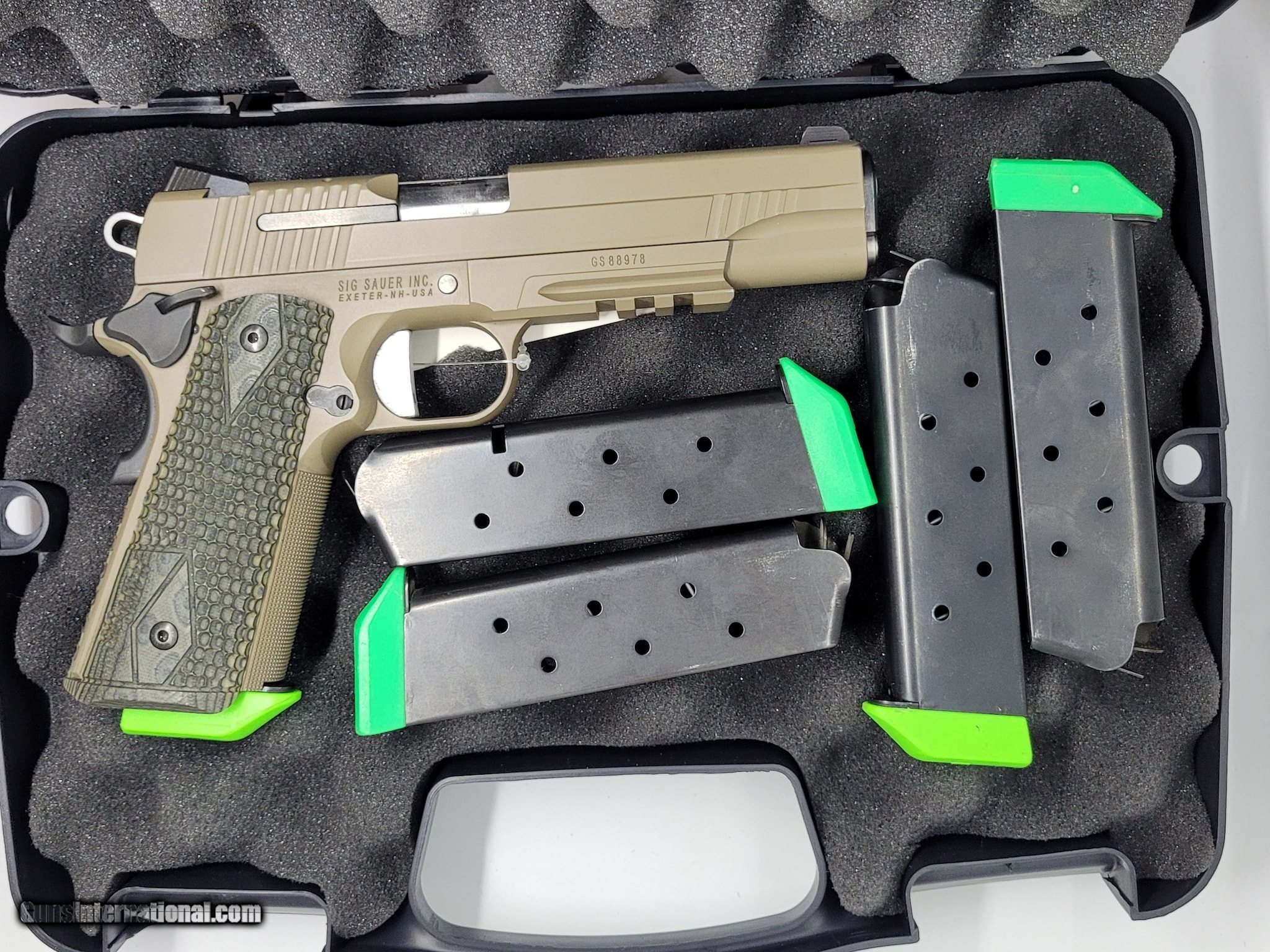 Description: Guns Listing ID: 712510 Up for sale is a beautiful Sig Sauer 1911 Scorpion in 45acp. These pistols are top notch, with an FDE finish and VZ style grips, Ambi safety, extended beavertail, flat trigger and combat hammer, and to top it off a very handy 1913 picatinny rail for accessories. This model also came standard with night sights- they still work, but seem a little faint. The grips also form something of a flared magwell-nice little bonus. Mechancially- Safety, magazien catch, slide catch and beaver tail safety are all fully funcitonal. Followers & Springs also look to be in great condition on all magazines. Cosmetically- Pistol has some wear at the hard edges, mostly around front of rail and slide (minor holster wear) condition is 90%+ Summary: (1) Sig Sauer 1911 Scorpion (5) 45 acp 8 round magazines (1) Hardcase included SOLD Manufacturer: SIG SAUER Model: 1911 EMPEROR SCORPION Caliber Info: 45 ACP Condition: Used - Non-Certified Barrels: 5 BARREL Finish: FLAT DARK EARTH |