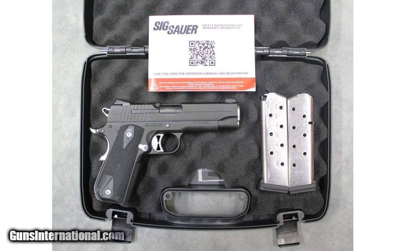 Description: This USED SIG Sauer 1911 Fastback Nightmare is a semi-auto handgun built on a proven platform that's been made for over a century and combines the legendary design of the 1911 with modern features for today's firearm enthusiast. It is made with a stainless steel frame with rounded grip and mainspring housing, as well as premium internal parts. The frame is Nitron-coated for added durability and nicely contrasted by the natural stainless controls, barrel bushing, extractor, and grip screws. The double diamond checkered G-10 grips ensure the user has a firm grasp, while the SIGLITE night sights provide a clear sight profile, even in low-light environments. .45 Auto SOLD Metal Condition: Overall Excellent with some small scratches and marks form light to moderate handling/use. Bore Condition: Excellent Barrels: 4.25 Weight: 2 lbs Sights: SIGLITE night sights Item Location: Las Vegas, NV |