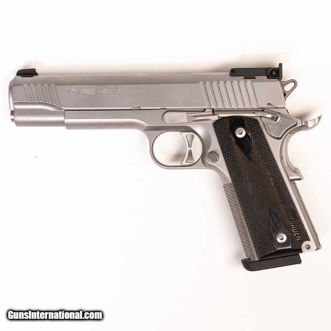 Description: Guns Listing ID: 475487 For sale is a Sig Sauer 1911 Match Elite. This handgun would be perfect for a wide variety of tasks, as it is both powerful and reliable. If you‚‚re looking for a trustworthy pistol, it doesn‚‚t get much better than a 1911 made by Sig. This 1911 Match Elite includes the original case, manual, and three 9-round magazine SOLD Manufacturer: SIG SAUER Model: 1911 MATCH ELITE Caliber Info: 9MM LUGER Condition: Used - Certified Barrels: 5 BARREL Finish: STAINLESS |