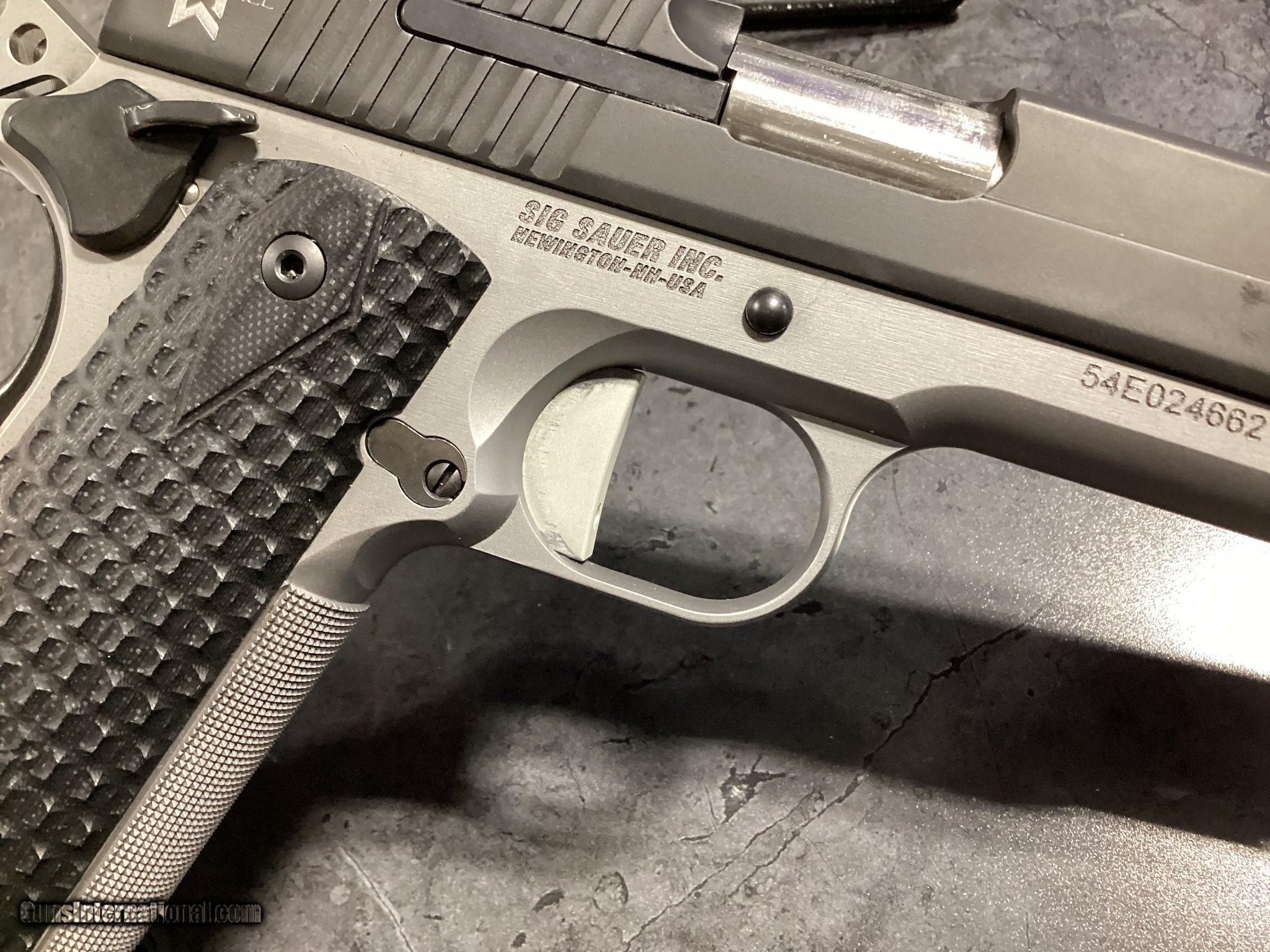 Description: Guns Listing ID: 881386 Wear on trigger and barrel. Great condition for the price. SOLD Manufacturer: SIG SAUER Model: 1911 MAX MICHEL Caliber Info: 9MM LUGER (9X19 PARA) Condition: Used - Non-Certified Barrels: 5 BARREL Finish: BLACK AND SILVER |