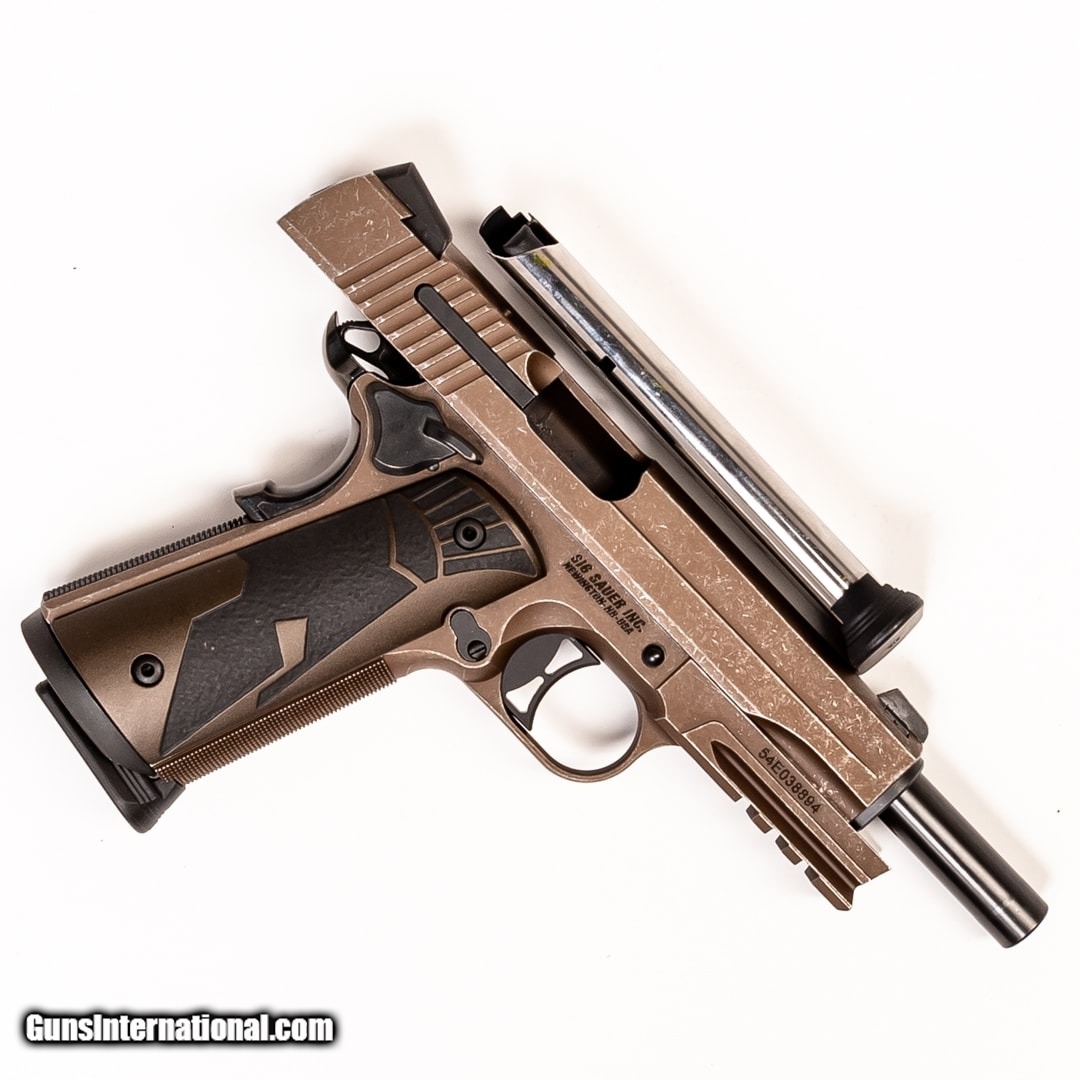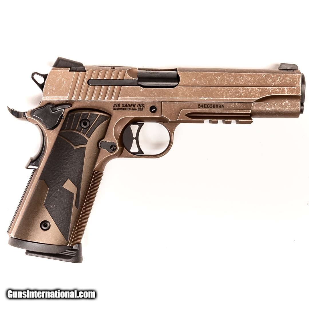 Description: Guns Listing ID: 488598 This Sig Sauer 1911 Spartan II is an awesome looking gun that shoots well too. 2-8 round magazines and a Pelican 1170 case are included. SOLD Manufacturer: SIG SAUER Model: 1911 SPARTAN II FULL-SIZE Caliber Info: .45 ACP Condition: Used - Certified Barrels: 5 BARREL Finish: CUSTOM |