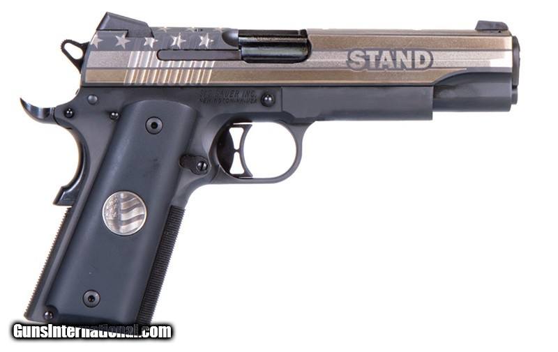 Description: Introducing the special edition 1911 STAND. Show your unwavering support for the flag and for America’s National Anthem with this special commemorative edition. With its stars and stripes engraved slide and custom grips with embedded flag medallion, you’ll proudly share in our support for America’s troops and first responders. Sig Sauer teamed up with United Sporting Companies and Bangers USA to offer this unique firearm and to donate a portion of the proceeds from the sales to H.A.V.A. (Honored American Veterans Afield), which works with wounded veterans and active-duty military, and C.O.P.S. (Concerns of Police Survivors), which helps support the families of fallen law enforcement officers. Outfitted with low profile SIGLITE night sights and custom medallion grips, the 1911 STAND features SIG's durable Nitron finish designed for rugged use. The all stainless steel frame and slide of the STAND are machined to exacting tolerances and hand-fitted to ensure reliability and performance. The frame features 25-line per inch checkering on the front strap. Like all SIG SAUER products, the 1911 STAND pistols contain only premium internal parts including a match grade barrel, hammer/sear set, and trigger. For safety, the 1911 Select features a beavertail grip safety, extended thumb safety, firing pin safety and hammer intercept notch. ***WE OFFER FREE 10 MONTH LAYAWAY WITH ONLY 10% DOWN*** OAKLAND GUN , 189 CR 175, Oakland Arkansas 72661 (870)431-4311 LAYAWAY POLICY 1. 10% down to start layaway. 2. Make another 10% payment every 30 days until the item is paid off. 3.No refunds or returns. 4. No penalty for early pay off. 5. Payments are nonrefundable and nontransferable. 6. No fees or interest. 7. If no payment is made within 60 days, the item and all deposits will be forfeited. ALL ALASKA AND HAWAII SHIPPING BUYER WILL PAY ACTUAL SHIPPING... Inventory: Items are subject to prior sale and are subject to availability at the time payment is actually received. Photos and Specifications: Many of our photos are provided by the manufacturer and may not necessarily represent the actual item being purchased. Please verify any photo accurately reflects the product described in the title, description, and/or specifications before you order. We do our best, but please notify us via email if you notice any potential conflicts in an image, title, or specification. Please contact us via email with any questions you may have regarding this item. Payment: Personal Check, Visa / MasterCard, Discover, USPS Money Order, Money Order, Certified check. The above prices on this item reflect a 3% cash/check discount. This discount is not valid for credit card purchases. Add 3% to the total cost for credit card purchases. Shipping: Priority Mail with Insurance $39.00 Additional Terms of Sale, no international shipments. SOLD Manufacturer: SIG SAUER Model: 1911 STAND Caliber Info: 45 ACP Condition: Factory New Item Location: Oakland, AR |