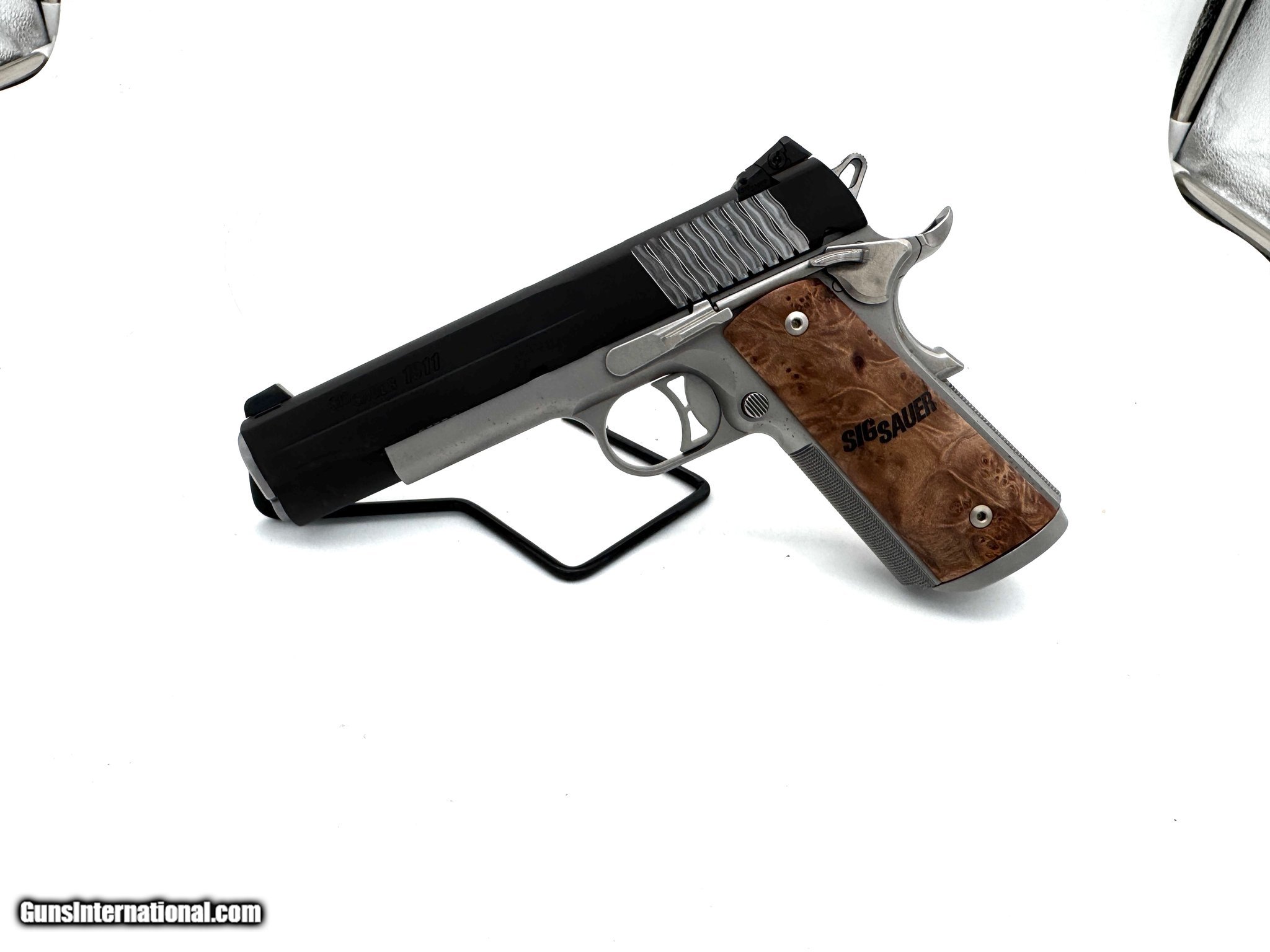 Description: Guns Listing ID: 1406599 The Sig Sauer 1911 STX is a high-quality, full-size 1911-style pistol designed for both accuracy and aesthetics. This .45 ACP handgun features a stainless steel frame and slide with a two-tone finish—polished on the flats and matte on the rounds, creating a striking visual contrast. The slide has rear and front cocking serrations for easy manipulation and is topped with SigLite night sights for improved visibility in low-light conditions. The 1911 STX comes with a 5-inch match-grade barrel and a tight slide-to-frame fit, enhancing its accuracy. It has a skeletonized trigger and hammer for a crisp trigger pull and fast reset, as well as an extended beavertail grip safety and ambidextrous thumb safety for comfortable and secure handling. The pistol is adorned with custom Hogue wood grips featuring checkering and the Sig Sauer medallion, providing a classic look with a modern touch. Overall, the Sig Sauer 1911 STX is a blend of traditional 1911 styling with modern enhancements, making it suitable for target shooting, competition, and as a collector‚‚s piece SOLD Manufacturer: SIG SAUER Model: 1911 STX Caliber Info: .45 ACP Condition: Used - Non-Certified Barrels: 5 BARREL Finish: CHROME AND BLACK |