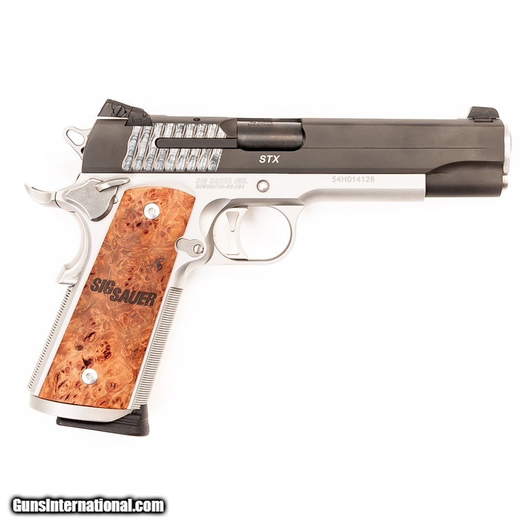 Description: Guns Listing ID: 377794 This 1911 STX features Sig night sights (white sight ring) with back adjustable/serrated with a night sight slit. Purchase includes the original case, manual, and two 8-round magazines. Get the best bang for your buck when you get a Certified Used Firearm . When you see the Certified Used stamp on any of our firearms, you can be confident that you‚‚re getting exactly what you want – a gun only in very good to excellent condition and held to the highest quality standard. All Certified Used Guns come with a ‚‚no questions asked‚‚ return policy . PLUS, ALL CERTIFIED USED GUNS SHIP FR SOLD Manufacturer: SIG SAUER Model: 1911 STX Caliber Info: .45 ACP Condition: Used - Certified Barrels: 5 BARREL Finish: TWO TONE BLACK AND STAINLESS Weight: 2.4 LBS. |