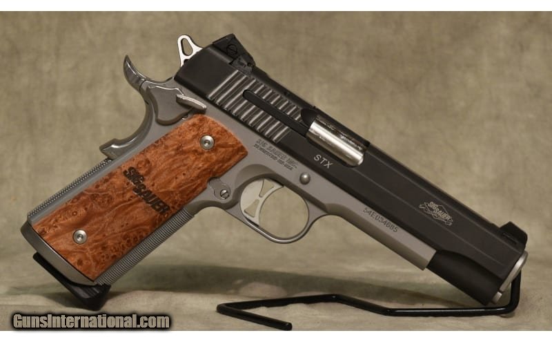 Description: Sig Sauer 1911 STX in excellent condition chambered in .45 Auto. Includes two 8 round magazines, and factory hard case. .45 Auto SOLD Metal Condition: Excellent Wood Condition: Excellent Bore Condition: Bright Barrels: 5 Item Location: Chesterfield, MI |