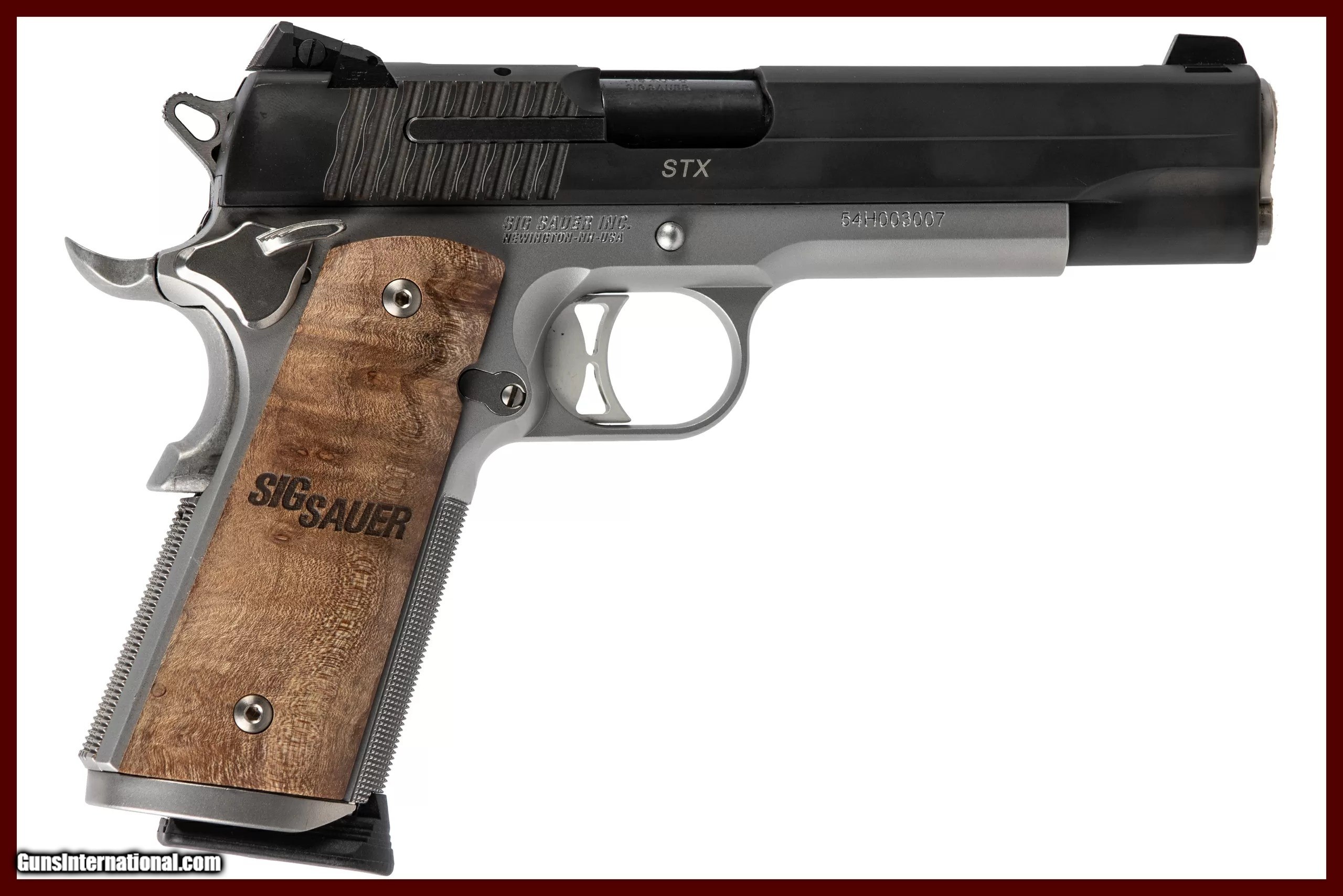 Description: Sig Sauer Model 1911 STX Made in America chambered in 45 ACP with a 5 inch barrel, bright bore with sharp rifling. This pistol comes with a case. The NRA grading condition for this USED firearm is Excellent. Dury's Lifetime Warranty: All firearms purchased from Dury’s Gun Shop, NEW or USED, are covered by a lifetime warranty. We will repair or replace, at our discretion, any firearm purchased from Dury’s Gun Shop, Inc. for as long as it is owned by the purchaser. This warranty is not transferable. WE BUY GUNS! NO COLLECTION TOO BIG OR SMALL FOR OUR GUNS INTERNATIONAL CUSTOMERS ALL OF OUR FIREARMS CAN BE PURCHASED DIRECTLY FROM OUR DURY'S GUNS SITE ! SOLD Manufacturer: Sig Sauer Model: 1911 STX Caliber Info: 45 ACP Barrels: 5inches |