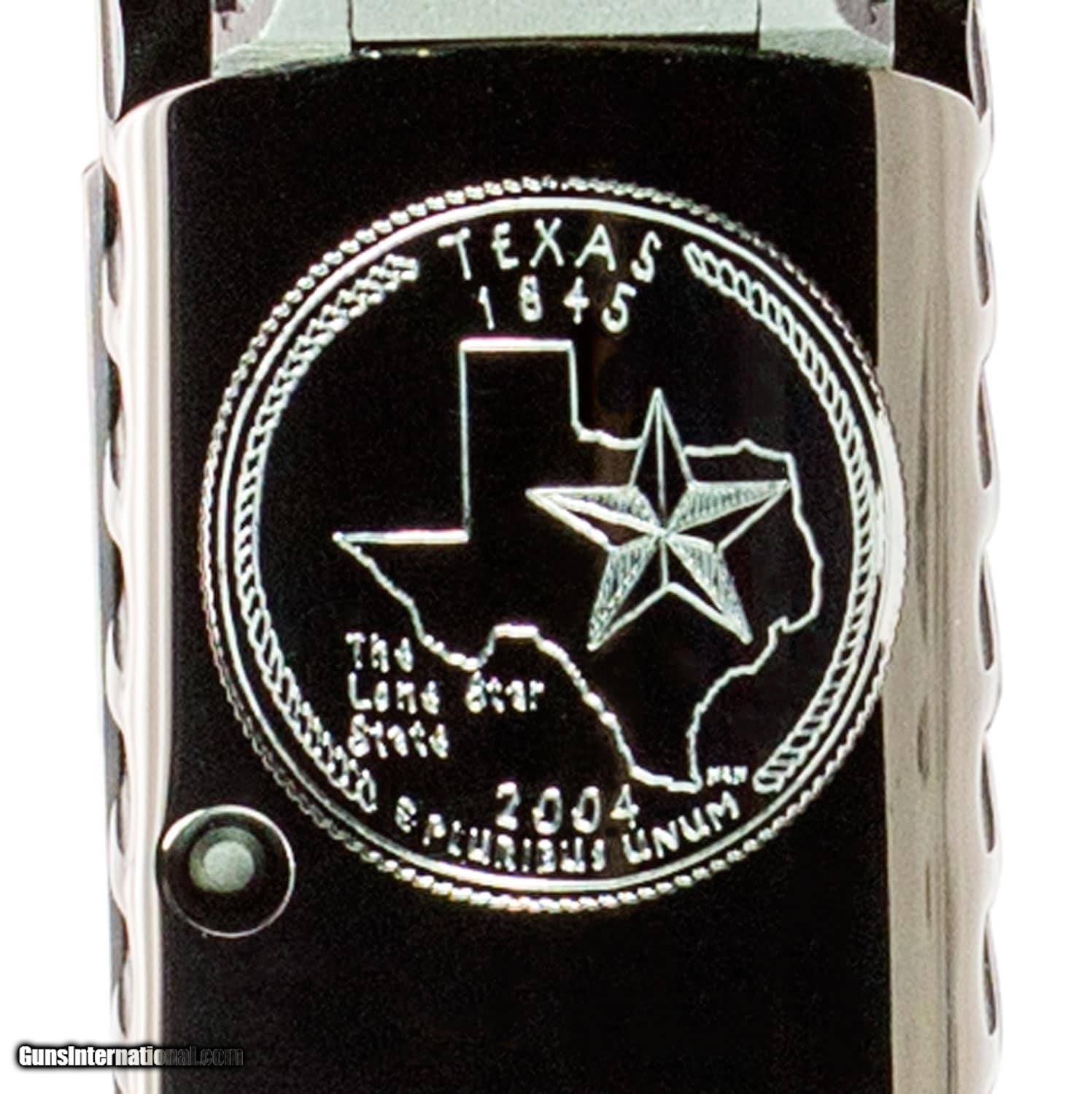 Description: Guns Listing ID: 903276 Built on a proven platform that is more than a century old the SIG Sauer 1911 Full-Size combines the legendary design of the 1911 with modern features for todays firearm enthusiasts. This semi-automatic handgun is made with an all-metal frame and protective coating and features exceptional ergonomics and a crisp single-action only trigger pull. Chambered in 9mm 10mm 45 ACP and 357 SIG the 1911 Full-Size offers a 71 or 81 capacity. Details Sig Sauers 1911 Engraved Texas edition features scrolled engraving on a polished Nitron slide with silver accents and custom Texas redwood grips emblazened with the Texas star. The Texas state quarter is engraved on the top of the slide with quotLONE STAR STATEquot on one side and quotTexas has yet to learn submission to any oppression. - Sam Houstonquot on the other side. A beautiful full size 1911 this Engraved Texas model features a natural finish stainless steel beavertail frame with black controls a combat hammer skeletonized trigger and low profile night sights. SOLD Manufacturer: SIG SAUER Model: 1911 TEXAS ENGRAVED TWO TONE Caliber Info: .45 ACP Condition: new Barrels: 5 BARREL |