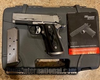 Description: Guns Listing ID: 985557 Very clean. Comes with Factory Sig Sauer Case & 2 magazines SOLD Manufacturer: SIG SAUER Model: 1911 ULTRA COMPACT Caliber Info: .45 ACP Condition: Used - Non-Certified Barrels: 3.3 BARREL |