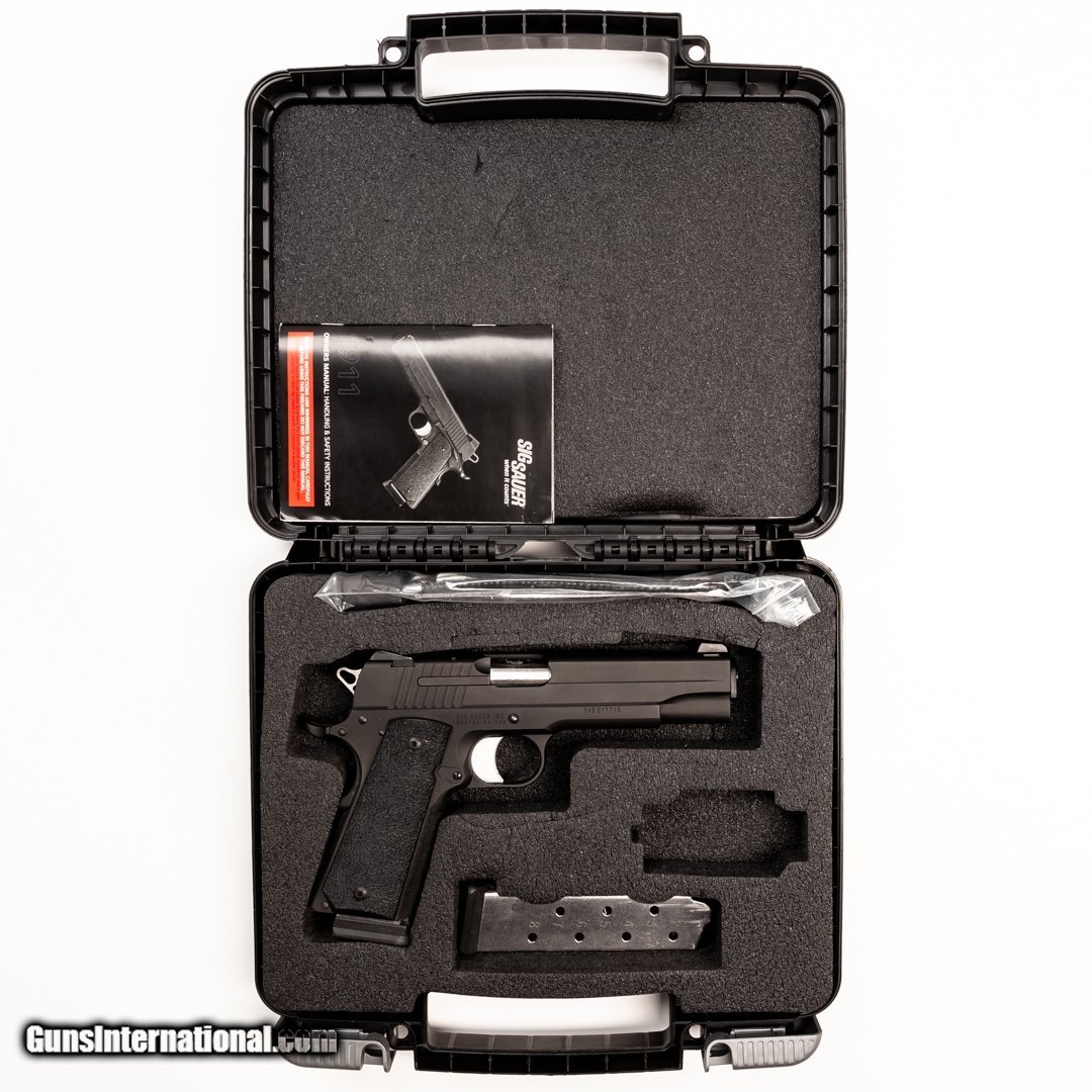 Description: Guns Listing ID: 1088821 The original case, manual, and two 8-round magazines are included. Get the best bang for your buck when you get a Certified Used Firearm . When you see the Certified Used stamp on any of our firearms, you can be confident that you‚‚re getting exactly what you want – a gun only in very good to excellent condition and held to the highest quality standard. All Certified Used Guns come with a ‚‚no questions asked‚‚ return policy . PLUS, ALL CERTIFIED USED GUNS SHIP FR SOLD Manufacturer: SIG SAUER Model: 1911 XO FULL-SIZE Caliber Info: .45 ACP Condition: Used - Non-Certified Barrels: 5 BARREL Finish: BLACK |