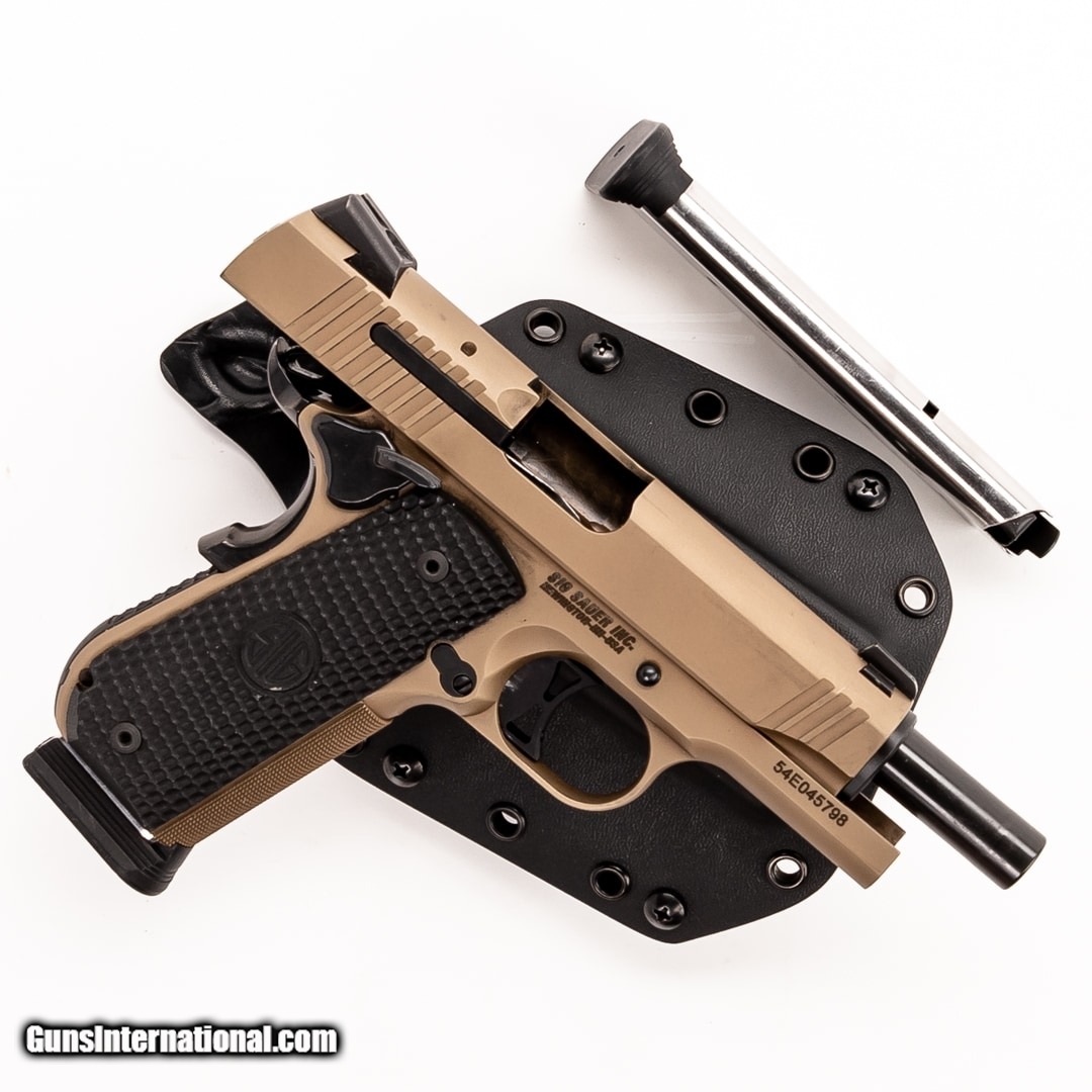 Description: Guns Listing ID: 379615 This 1911 Emperor Scorpion (Fastback) is a premium quality 1911 great for personal protection, self-defense, and duty use. This Fastback Emperor Scorpion comes with two 8-round magazines, a spare recoil spring, and a right-handed OWB Black Rhino Concealment hoslter. SOLD Manufacturer: SIG SAUER Model: 1911 Caliber Info: .45 ACP Condition: Used - Certified Barrels: 4.2 BARREL Finish: FDE |