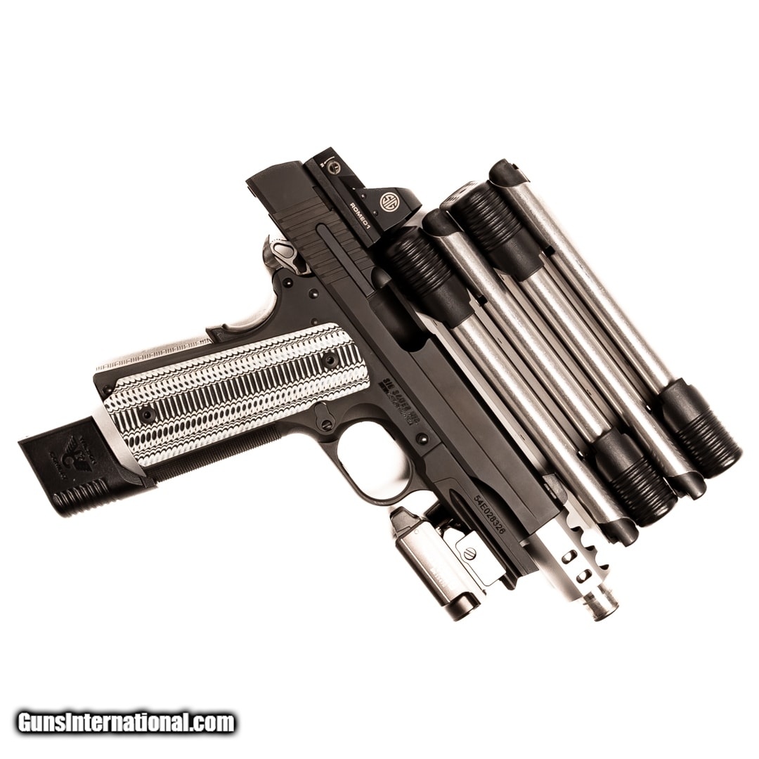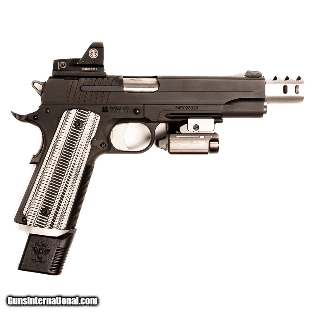 Description: Guns Listing ID: 758222 For sale is a Sig Sauer 1911. This handgun would be perfect for a wide variety of tasks as it is both powerful and reliable. If you‚‚re looking for a trustworthy pistol, it doesn‚‚t get much better than a 1911 made by Sig. This 1911 features a safety, Sig Romeo 1 red dot, and an Olight with charger. A compensator has also been installed. Five 10-round magazines are included. Get the best bang for your buck when you get a Certified Used Firearm . When you see the Certified Used stamp on any of our firearms, you can be confident that you’re getting exactly what you want – a gun only in very good to excellent condition and held to the highest quality standard. All Certified Used Guns come with a ‘no questions asked’ return policy . PLUS, ALL CERTIFIED USED GUNS SHIP FRE SOLD Manufacturer: SIG SAUER Model: 1911 Caliber Info: .45 ACP Condition: Used - Certified Barrels: 5 BARREL Finish: BLACK |