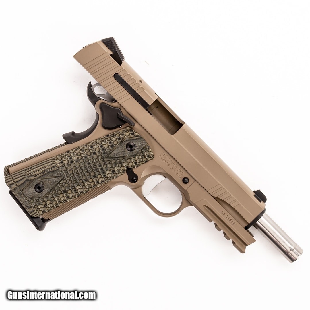 Description: Guns Listing ID: 369477 The 1911R Scorpion variant of the 1911 is Sig Sauer's tactical take on a classic military firearm. This pistol features the familiar and popular controls and ergonomics of the 1911 paired with an FDE finish and a tac rail. This handgun includes one 8-round magazine and the original case. SOLD Manufacturer: SIG SAUER Model: 1911R SCORPION Caliber Info: .45 ACP Condition: Used - Certified Barrels: 5 BARREL Finish: FDE |