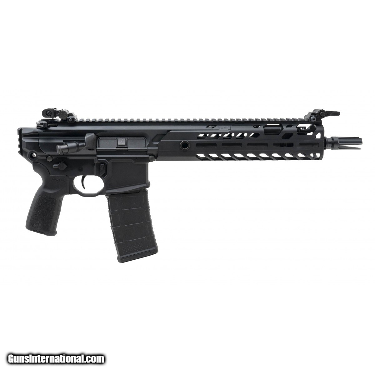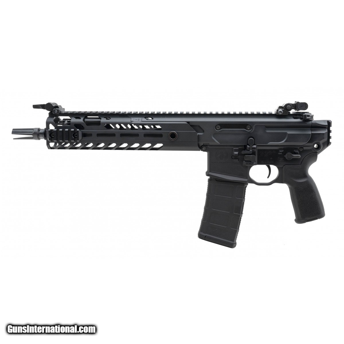 Description: " SN: 63J004842. Modern production. 5.56 NATO with a 11.5"" barrel, bore is excellent. Tactical semi automatic pistol with 10"" M-Lok handguard, piston driven, ambidextrous safety and charging handle. Overall in excellent condition. Comes with box and sling. SOLD |