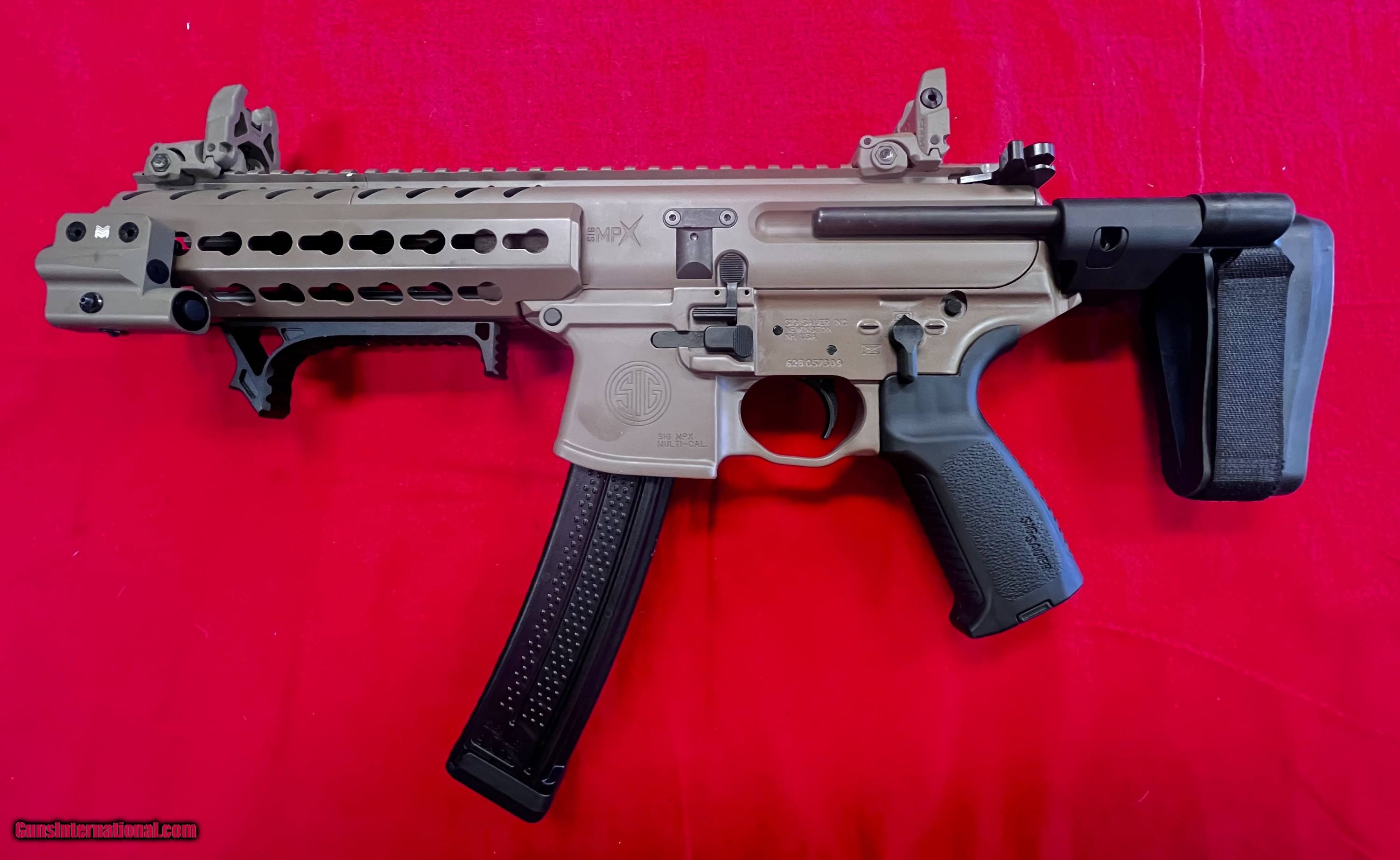 Description: Excellent no box SIG MPX in FDE 9mm one mag, BUIS, collapsing pistol brace keymod handguard SOLD |