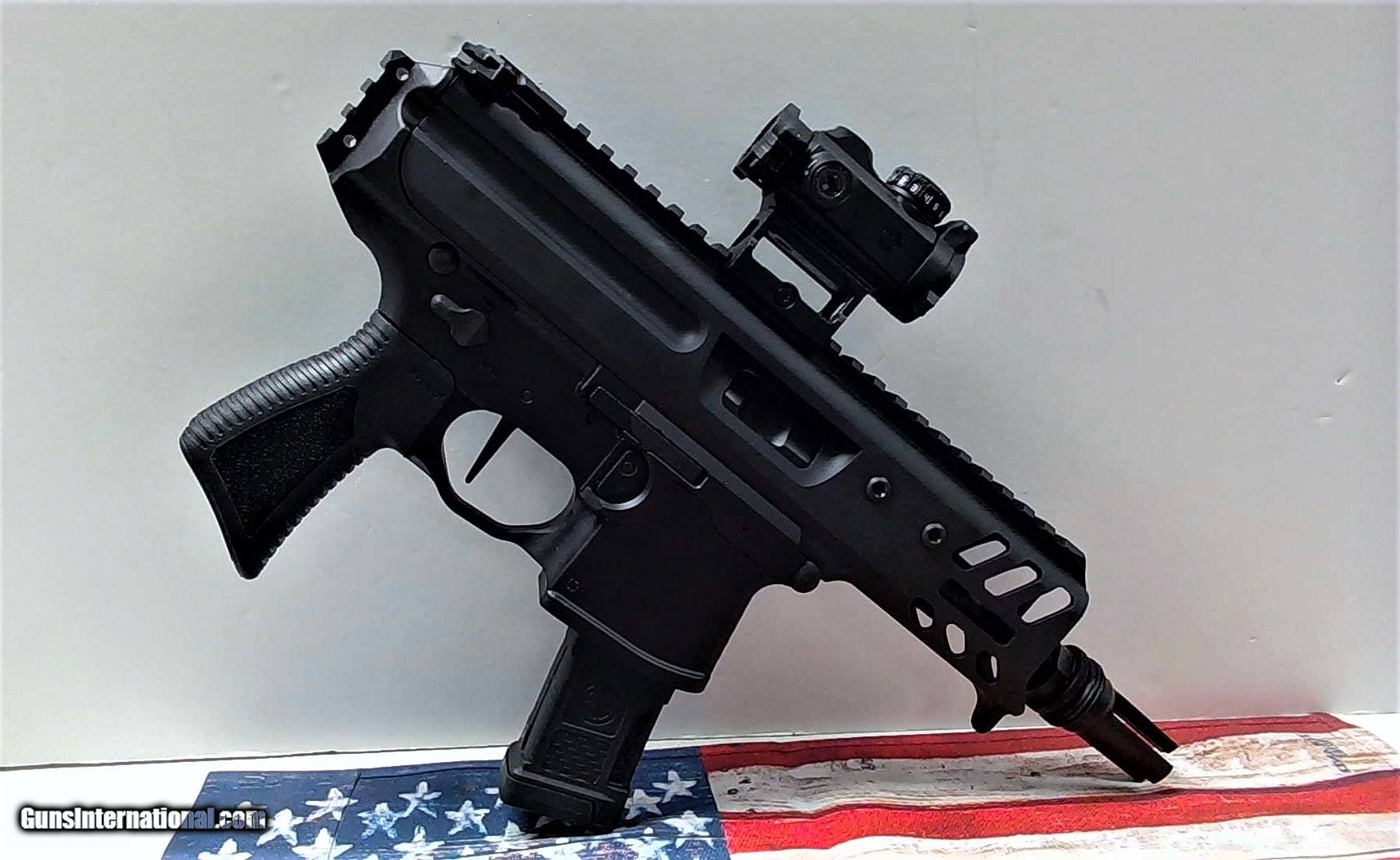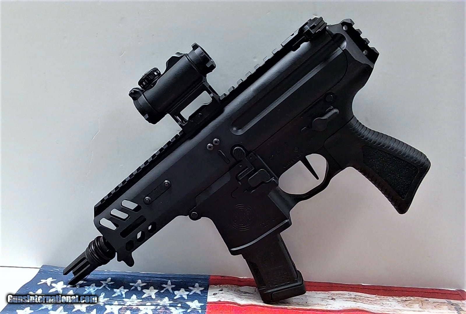 Description: Guns Listing ID: 926120 This Sig Sauer MPX pistol is in very good condition. There are some light scratches on the receiver. It is fitted with a Sig Sauer Romeo MSR red dot and an ASR flash suppressor. We have two magazines and the original flash suppressor. The Sig Sauer MPX Copperhead is a 9mm PCC that has redefined the sub-gun category. Finished in black, it features a 4.5-inch barrel, an MLOK handguard, a muzzle brake, top and rear mounted picatinny rails, a Timney single stage flat faced trigger, and one 20-round magazine. SOLD Manufacturer: SIG SAUER Model: MPX Caliber Info: 9MM LUGER (9X19 PARA) Condition: Used - Non-Certified Barrels: 4.5 BARREL Finish: BLACK |