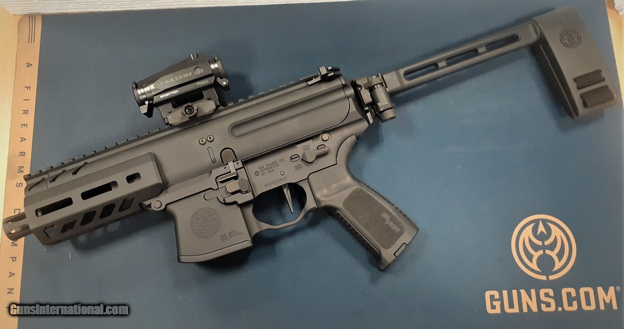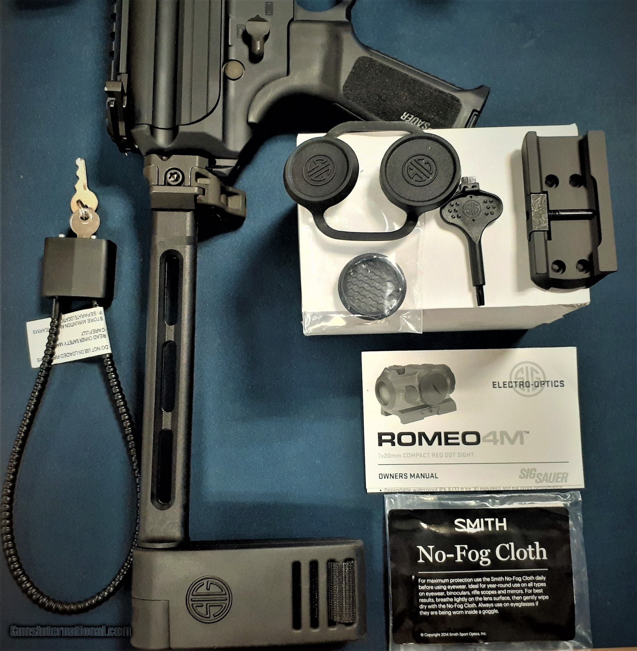 Description: Guns Listing ID: 627995 Romeo 4M 2MOA red dot mounted on MPX. Romeo 4M is the same model used by FBI Hostage Rescue Team (HRT). The optic is brand new and comes with a lens protectors installed, a bikini cover, anti glare honeycomb attachment, adjustment tool, low mount and anti-fog cleaning cloth. MPX-K is 4.5 inch pistol with pistol brace and comes with a single stage Timney Trigger installed, cable lock, chamber flag, and (1) 35 round magazine. Details: The choice of professionals worldwide, the MPX K offers a closed bolt gas piston system that is ultra reliable and durable. As with all MPX, the K is modular allowing for multiple handguard and barrel lengths and is ready to go for suppressor use. For 2019, the K now features the SIG PCB folding brace which allows the K to fold into an ultra-compact size and be operable in the folded position. The K also features an updated M-Lok handguard which is available as accessories in multiple lengths for suppressor coverage. Finally, the K is upgraded with the ultra smooth, ultra-fast Timney Trigger. Co-designed by Timney and SIG, this trigger offers the Timney performance you have come to expect we with the ultimate reliability to make it survive the punishment of a sub gun platform. If you are looking for the ultimate modular sub gun, look no further than the MPX K from SIG SAUER. Specs: Mag Type- MPX Barrel Length- 4.5 in (114 mm) Caliber- 9mm Luger Height- 8 in [203 mm] Overall Length- 22.25 in [565 mm] Overall Width- 2.4 in [61 mm] Twist Rate- 1:10 Weight- 5 lb (2.3 kg) Operating System- Gas Piston SOLD Manufacturer: SIG SAUER Model: PMPX-4B-9 TIMNEY TRIGGER FOLDING BRACE Caliber Info: 9MM Condition: Used - Non-Certified Barrels: 4.5 BARREL Finish: BLACK |