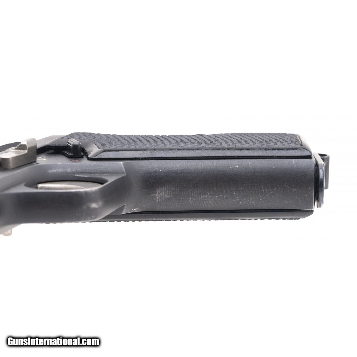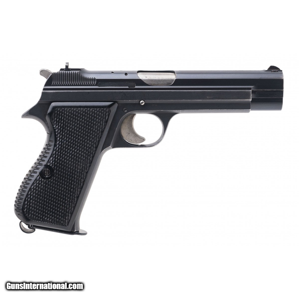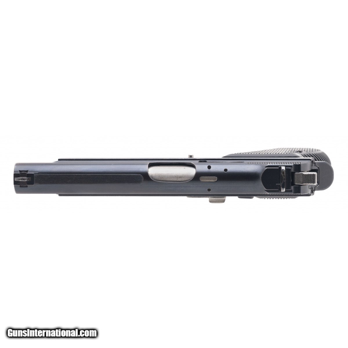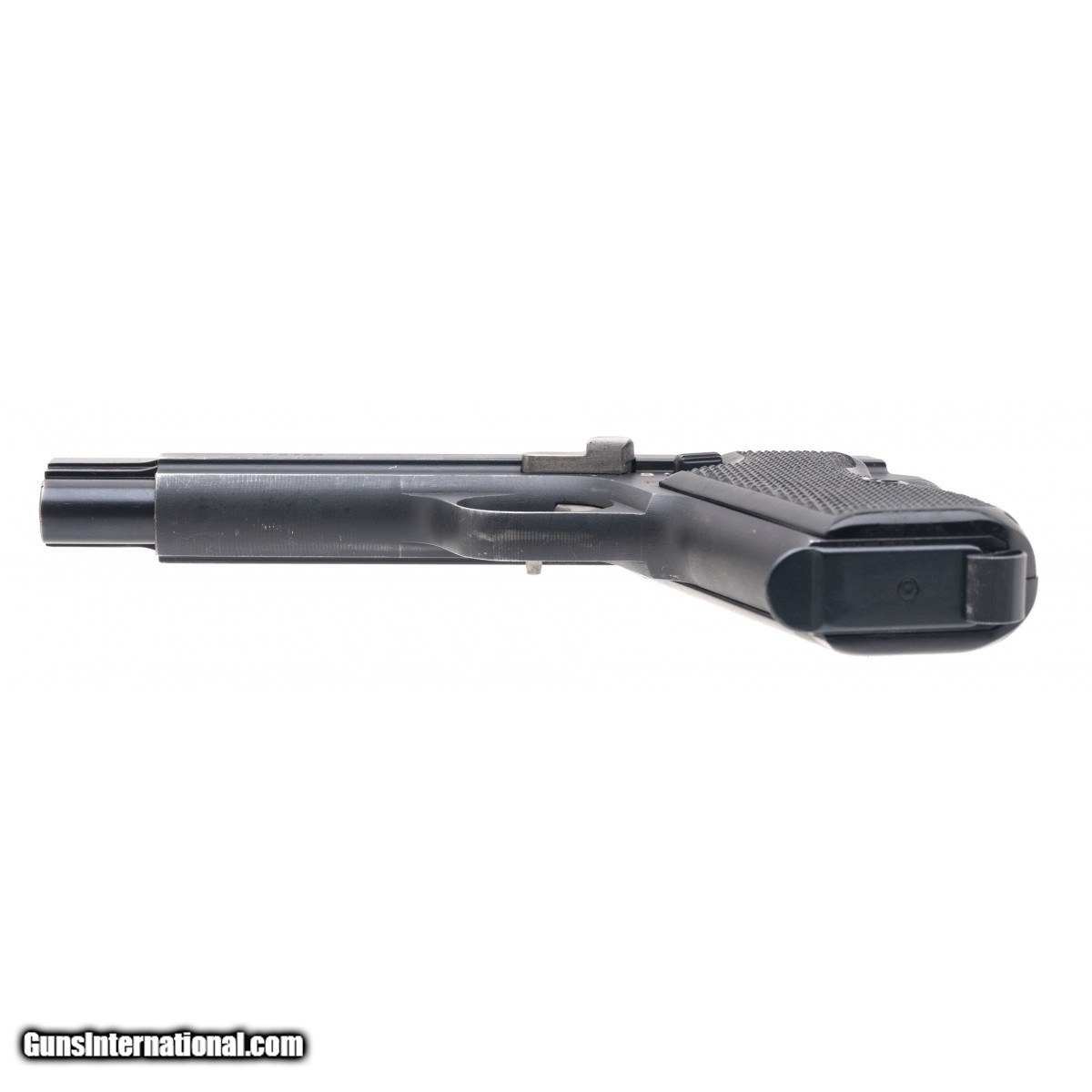 Description: " SN: D0726. 1950's production 9mm with a 4.7"" barrel. Bore is excellent. Rare variation of the SIG P210 pistol made for the W. German Border Guards with a loaded chamber indicator on the top of the slide. Very good condition with 90% original finish. Comes with box, manual and cleaning kit. Consignment. SOLD Curio/Relic: Yes |