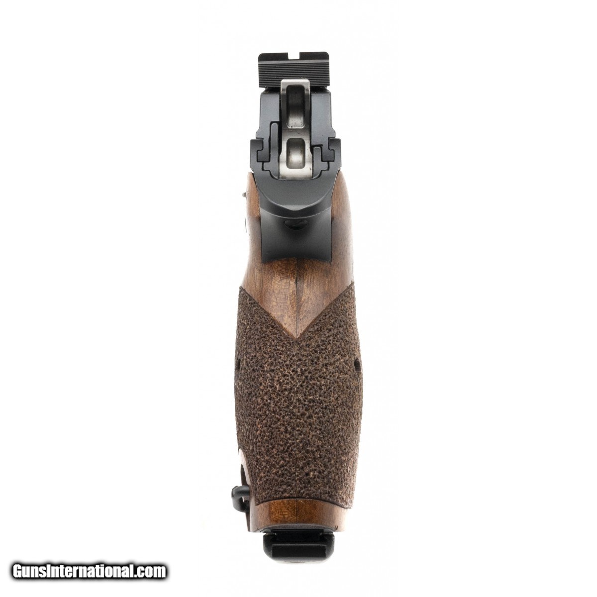 Description: "SN: P315934. 1990’s vintage 9mm with 4.7" and 150mm barrels. Bores are excellent. A rare model with special features: heavy frame, push button mag release, standard length slide and barrel, and 150mm extended barrel and slide, all with matching numbers. Excellent condition with box and extra mag. (CONSIGNMENT) SOLD |