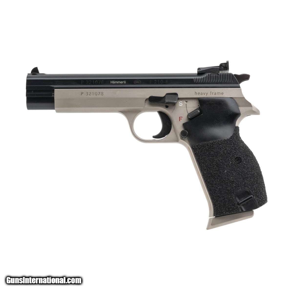 Description: " SN: P321078. Early 2000's vintage 9mm with a 4.7"" barrel. Rare Swiss made P210-8 Combat with a heavy frame. Has target sights, 2-tone finish, push-button mag release and stippled black polymer grips. Extremely rare! Excellent original condition with box and papers. (Consignment) SOLD |