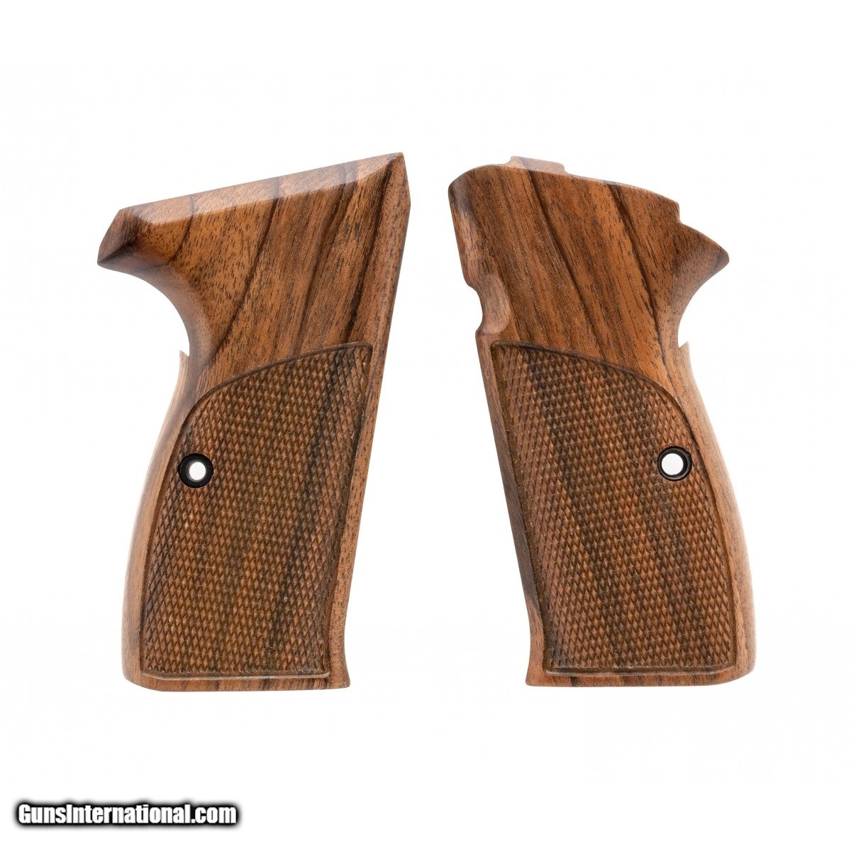 SN: 59B011677. Modern production. 9mm with a 4.7"" barrel. Bore is excellent. US made Steel frame, single stack 9mm handgun. Finish is in excellent condition. Black aftermarket grips are in near perfect condition. Comes with extra magazine and original wood grips. Overall condition is excellent. Consignment.