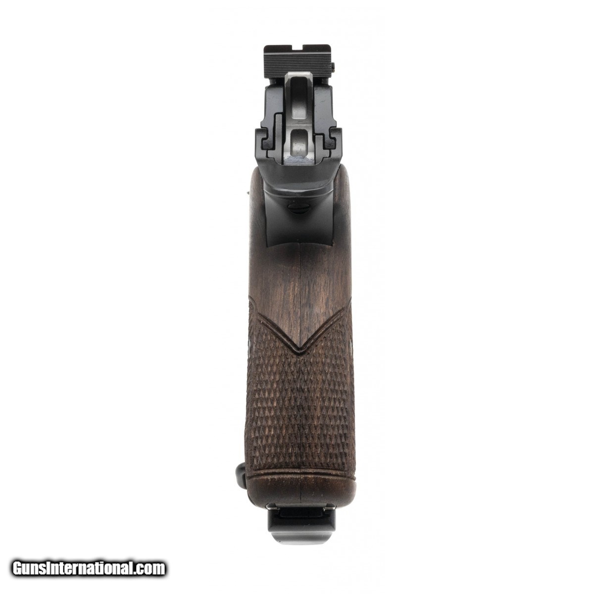 Description: "SN: P330821. Made in 2006, 9mm with a 150mm barrel. Very rare late production P210 with long barrel, a heavy frame and side mag release. These guns were made at the very end of Swiss P210 production; very few were made. Excellent original condition with box, papers and extra mag. (Consignment) SOLD |