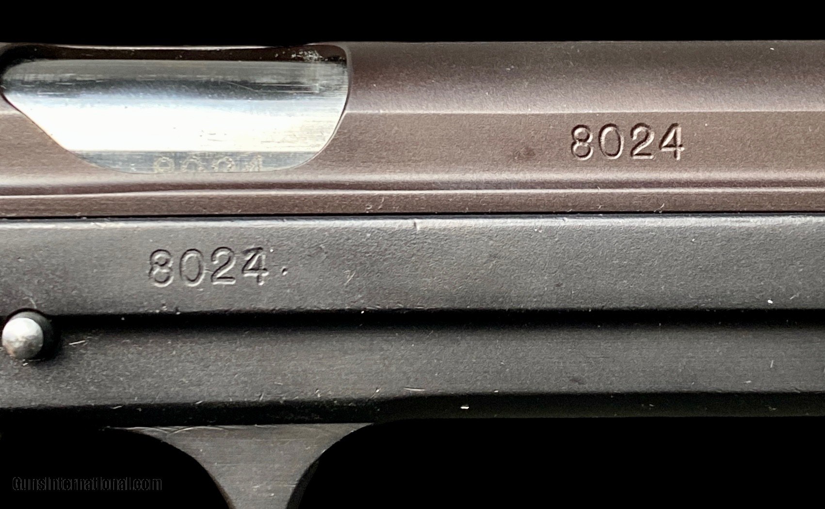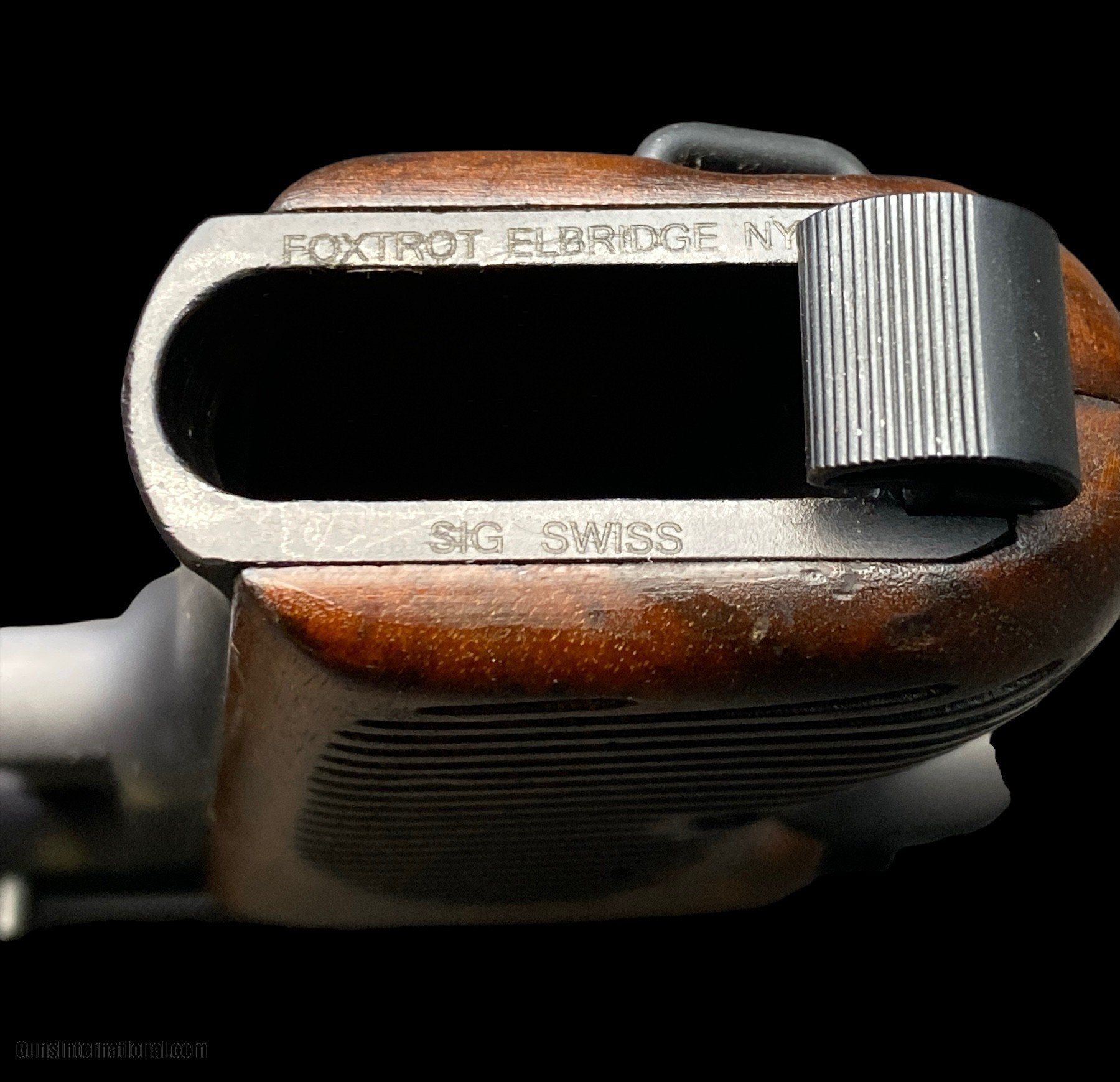 Description: This item has been sold! SIG - SWITZERLAND MODEL: P210 OR M/49 FOR DANISH MILITARY CONTRACT CAL: 9X19 SN: 8024 LEFT SIDE MARKED: "9mm P m/49" with Royal Crown over "HTK", SMALL "SIG" IN CIRCLE RIGHT SLIDE MARKED: "8024" DRIFT ADJUSTABLE REAR SIGHT 7 ROUND MAGAZINE CONDITION: GUN IS IN MINT OVERALL ORIGINAL CONDITION. POSSIBLY UN-ISSUED. GENTLEMEN, THIS IS THE FINEST SIG P210 M/49 WE HAVE EVER SEEN! FROM A EUROPEAN COLLECTION AND RECENT IMPORT. IMPORT MARKED AS PICTURED. A FINE SPECIMAN FOR YOUR COLLECTION! $25 S/H/I FFL REQUIRED FOXTROT IS A PURVEYOR OF FINE FIREARMS - WE PURCHASE, SELL, CONSIGN, TRADE, AND IMPORT FROM AROUND THE WORLD. OUR OWNER, FRANCIS LOMBARDI, HAS BEEN IN THE FINE FIREARMS BUSINESS SINCE 1987 AND WAS THE FORMER DEPARTMENT HEAD OF THE ESTEEMED JAMES JULIA COMPANY (THEN THE WORLD'S FOREMOST EER OF HISTORIC, ICONIC, AND RARE FIREARMS ACROSS ALL CATAGORIES). WE ARE ALSO THE US AGENT FOR KARL HAUPTMAN OF FERLACH, AUSTRIA - MAKER OF THE UNIQUE TRIPLE BARREL SxSxS AND ALSO KYNOCH AMMUNITION. FINDER FEES PAID FOR REFERRALS. PLEASE CALL NOW! SOLD Handgun Caliber: 9x19mm Parabellum (9mm Luger, 9x19mm NATO) Manufacturer: SIG Model: P210 M/49 Serial Number: 8024 Condition: MINT Metal Condition: MINT Wood Condition: MINT Bore Condition: MINT |