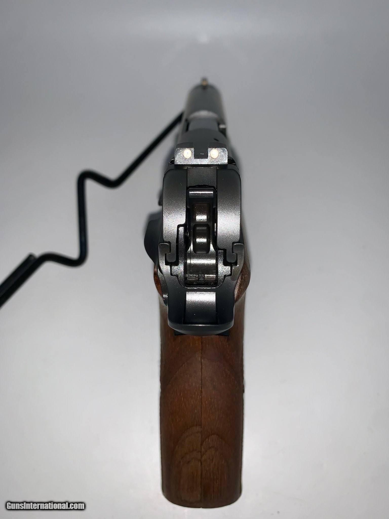 Description: Guns Listing ID: 598515 This is a preowned SIG SAUER P210 in VERY GOOD condition. Comes as pictures. Sig Sauer P-210 Target 9mm Luger 5in Black Nitron Pistol - 8+1 Rounds - The P210 Target takes the precision of its 1947 Swiss predecessor and greets it with new sleek, custom walnut target grips, a precision-machined stainless steel slide and frame, and a lightweight target trigger. Action: Pistol Model: P210 Capacity: 8+1 Barrel Length: 5in Finish: Black Nitron / Stainless Steel Grips: Walnut Sights: Fiber Optic Front / Adjustable Rear Cartridge: 9mm Luger Hand: Right 1025006-TCM Manufacturer: SIG SAUER Model: P210 Caliber Info: 9MM LUGER (9x19 PARA) Condition: Used - Non-Certified Barrels: 5" BARREL Action: SEMI AUTOMATIC Finish: black /w wood stock Price: $1,499.99 Contact Seller |