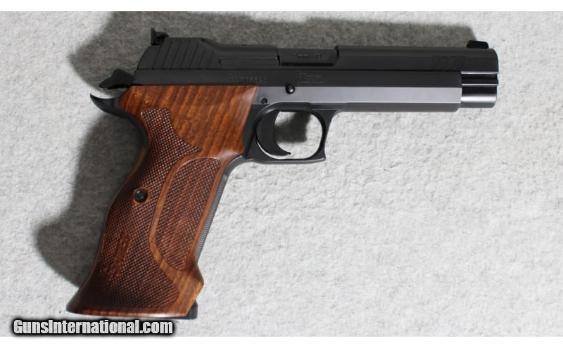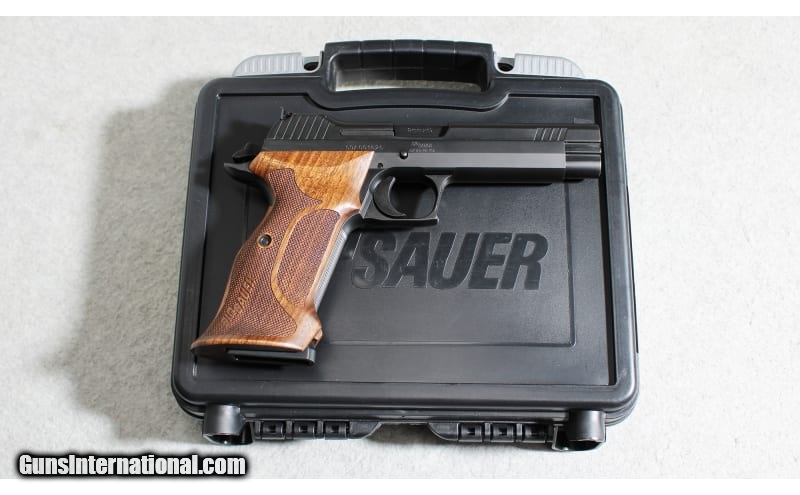 Description: This firearm has it's original box and all paperwork/tools are included. Also comes with 2 additional magazines for a total of 3. From Sig's : "A full-size single-stack classic pistol meets updated ergonomics, sleek walnut target grips, and a smooth, crisp target trigger." Features a stainless steel slide and frame with Sig's "Nitron" finish. 9mm Luger SOLD Metal Condition: Very Good with Minor Handling Marks Wood Condition: Very Good with Minor Wear Bore Condition: Bright and Clear with Good Rifling Barrels: Carbon Steel Triggers: Target Grade Trigger Butt Pad: Wooden grips with engraved patterns Weight: 2 lb 7 oz Sights: Adjustable Item Location: Fort Worth, TX |