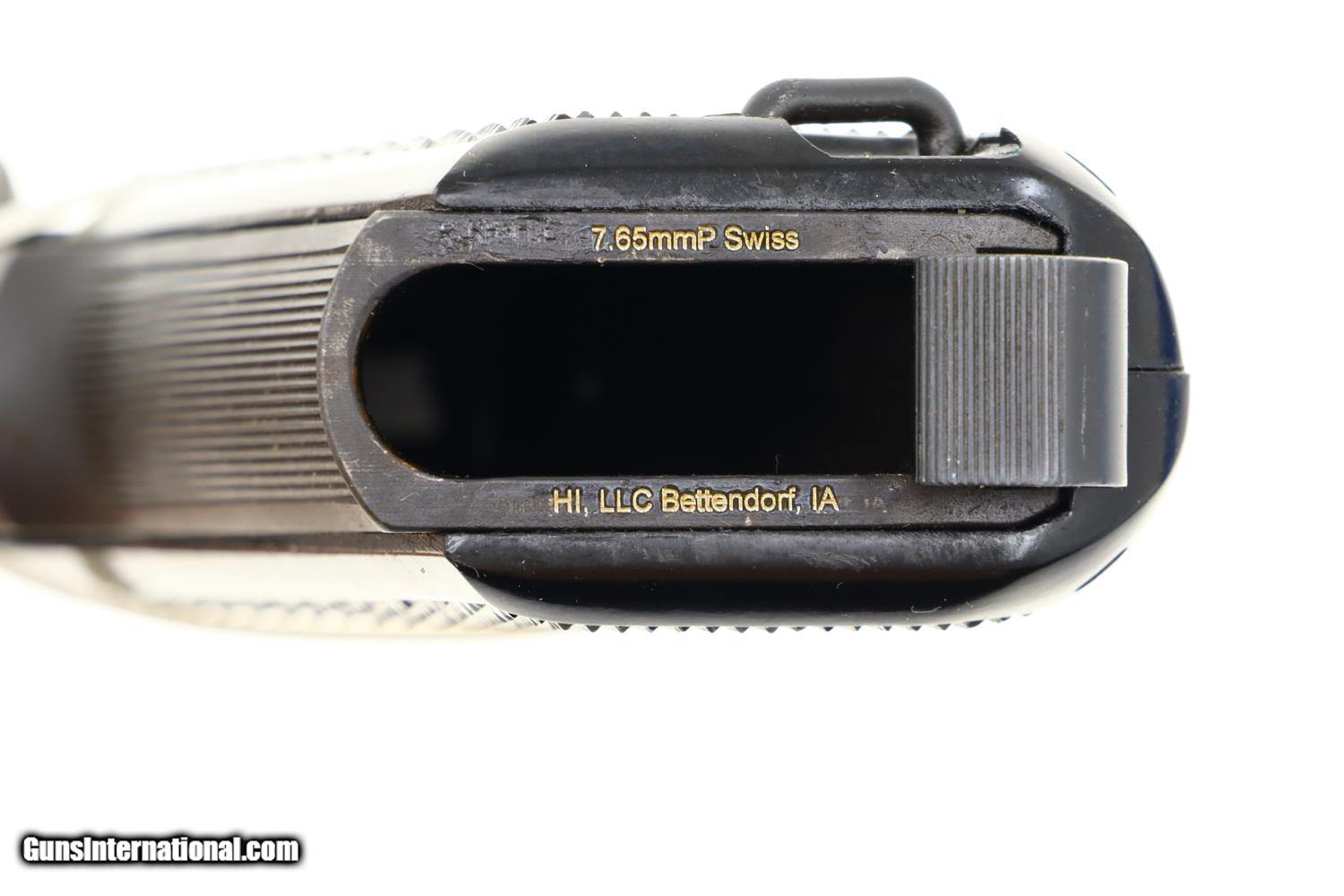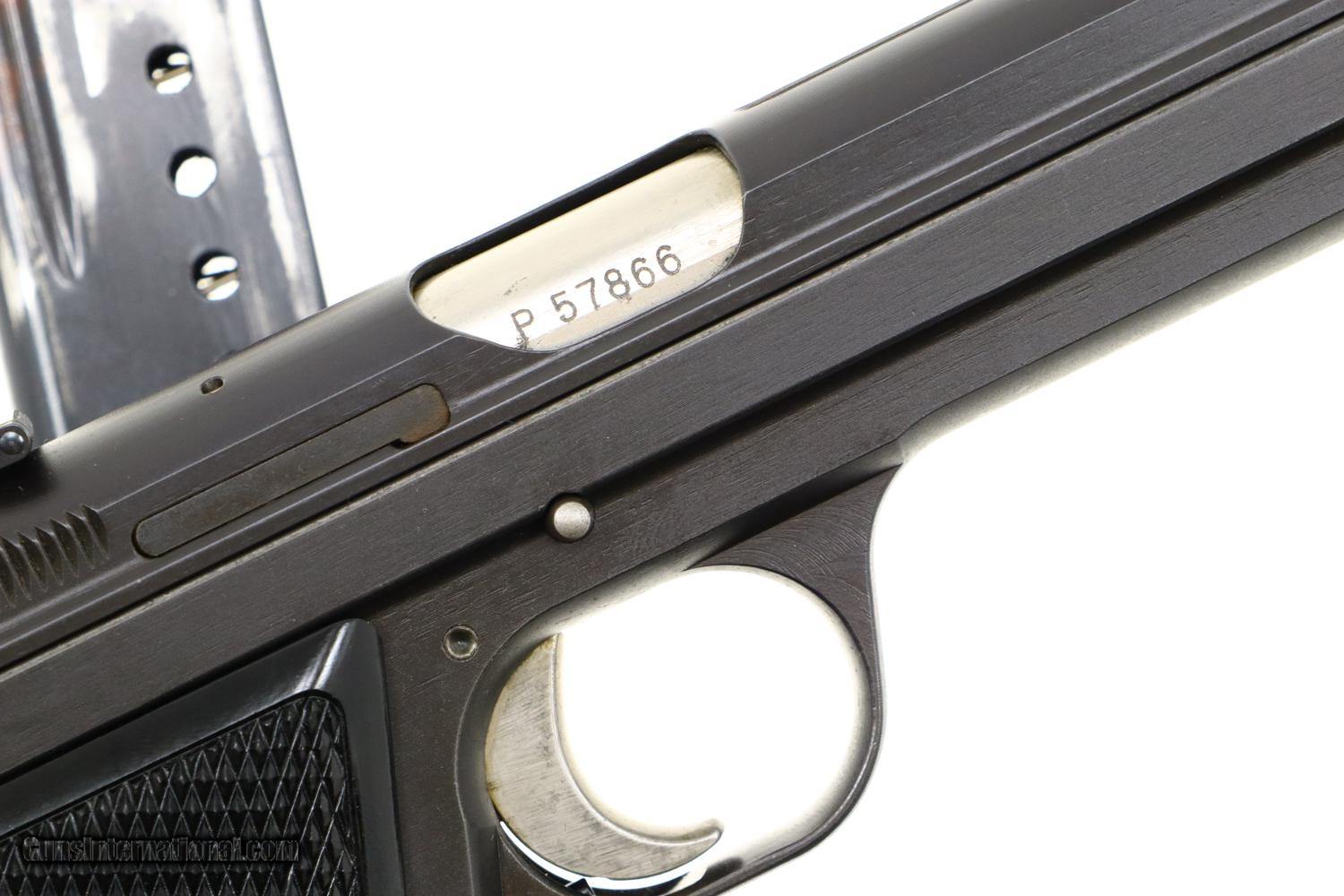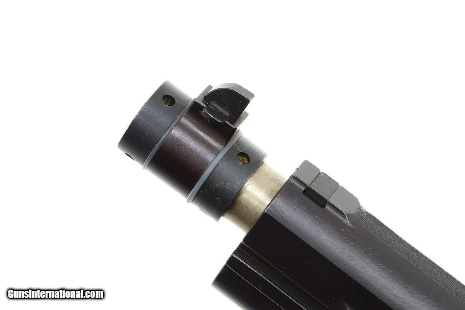 Excellent+ with just the faintest sharp edge wear, safety arc, staining of the in-the-white parts (hammer, trigger, and slide stop) as photographed. Mirror bore. Perfect manual mechanics. A top condition gun that will not disappoint you!