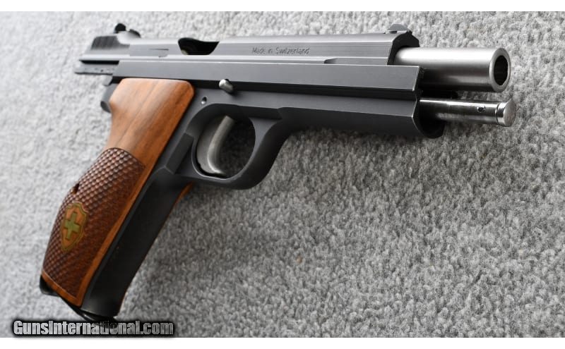 Description: One of the finest pistols ever made, the SIGArms P210-6 delivers unparalleled accuracy. This is an early model and, is in very good condition. 9mm Luger SOLD Chambers: 9mm Luger in an eight round detachable magazine semi-auto pistol Metal Condition: "Good, shows a few small marks and light edge wear Wood Condition: "Very good, after market grips Bore Condition: Very good Barrels: 4.7 Triggers: Single Action Weight: 34 OZ Sights: Dovetailed blade front and leaf rear Item Location: Grand Junction, CO |