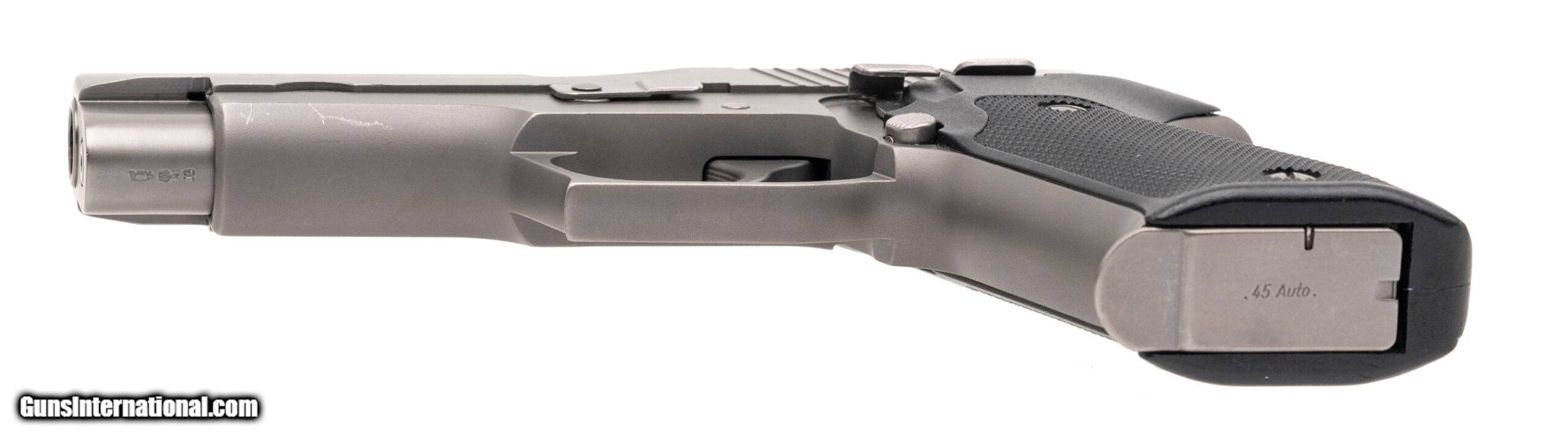 Description: "SN: G148123. 1986 production, .45 Auto with a 4.3"" barrel. Bore is bright with strong rifling. Very desirable West German made alloy frame double action pistol with Trijicon night sights. Metal shows light marks but the overall condition is very good. Price: $999.95 Contact Seller |