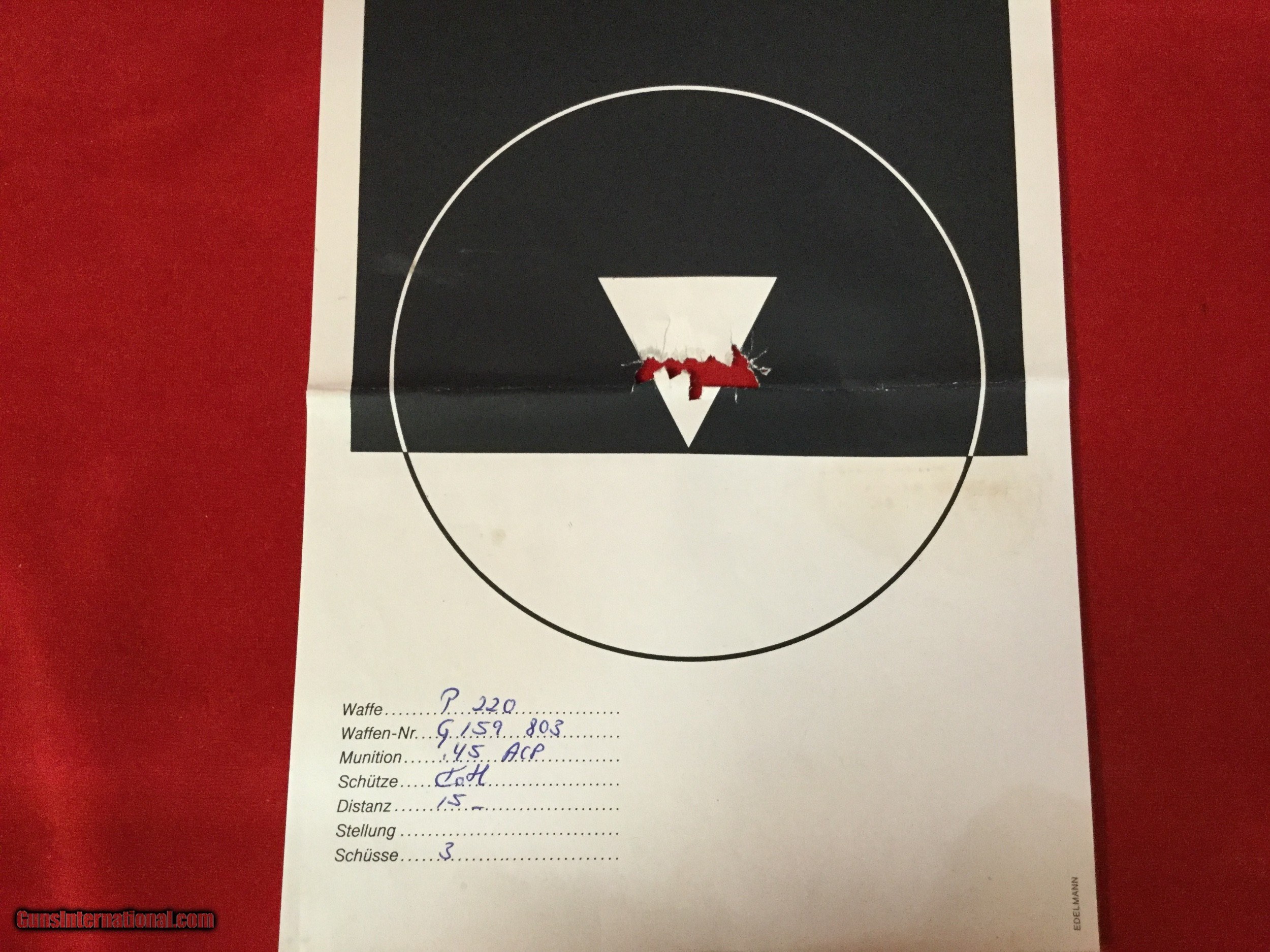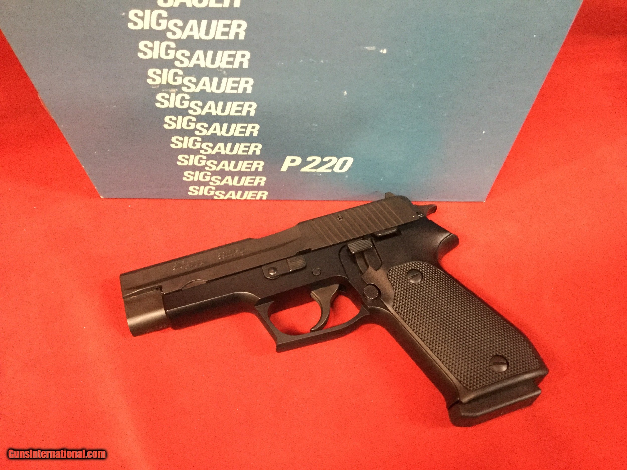 Description: ~~Used~~ Sig Sauer P220 45acp. Early West German production pistol that is in excellent condition. Includes box, manual, test target and 2 additional magazines. $699.99 plus $40.00 for shipping and insurance. Add 4% for credit card payments. SOLD Handgun Caliber: .45 ACP (.45 Auto) |