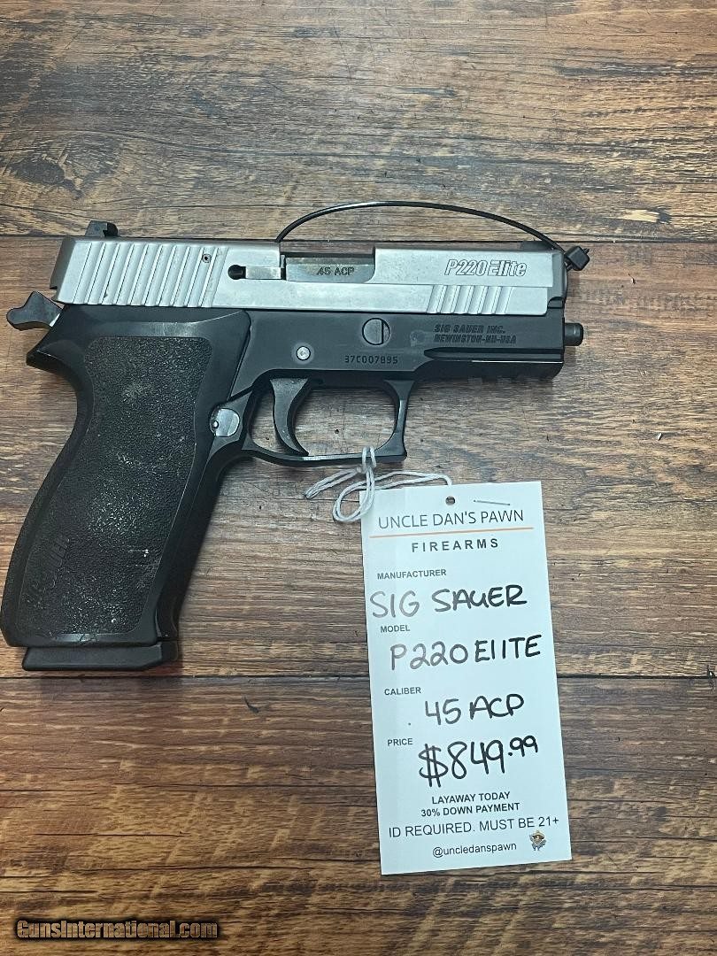 Description: Guns Listing ID: 577343 SIG SAUER P220 ELITE 45 ACP ONE 8 ROUND MAGAZINE Manufacturer: SIG SAUER Model: P220 ELITE Caliber Info: .45 ACP Condition: Used - Non-Certified Barrels: 4" BARREL Action: SEMI AUTOMATIC Finish: TWO TONE BLACK AND STAINLESS Price: $849.99 Contact Seller |