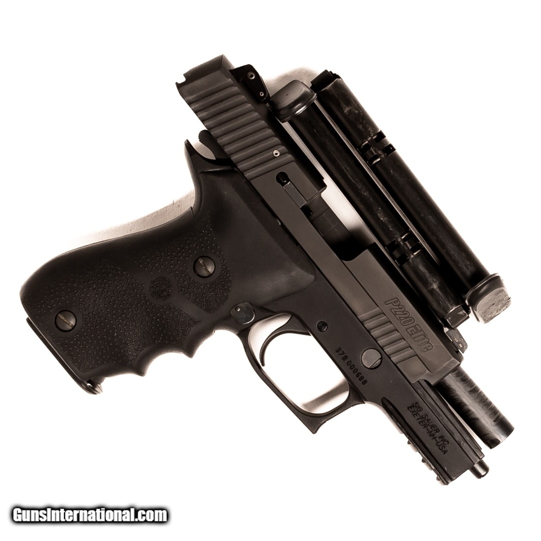 Description: Guns Listing ID: 840793 This Sig Sauer P220 Elite is a full-size semi-auto handgun engineered to deliver outstanding performance under any circumstances. The weight and balance aid in reduced recoil and greater control. Features include a Short Reset Trigger (SRT) and Sig’s four-point safety system. The integral rail forward of the trigger guard makes for easy mounting of accessories. This P220 Elite features a decocker, night sights, and a Hogue grip. Purchase includes the original case, owner‚‚s manual, and three 7-round magazines. Get the best bang for your buck when you get a Certified Used Firearm . When you see the Certified Used stamp on any of our firearms, you can be confident that you’re getting exactly what you want – a gun only in very good to excellent condition and held to the highest quality standard. All Certified Used Guns come with a ‘no questions asked’ return policy . PLUS, ALL CERTIFIED USED GUNS SHIP FREE SOLD Manufacturer: SIG SAUER Model: P220 ELITE Caliber Info: .45 ACP Condition: Used - Certified Barrels: 3.7 BARREL Finish: BLACK |