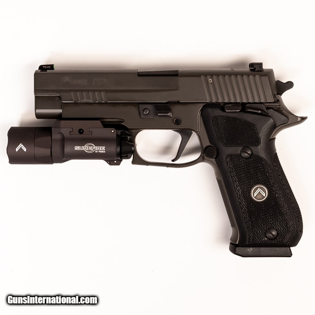 Description: Guns Listing ID: 537811 The Sig Sauer P220 Legion is semi-auto handgun chambered in the powerful 45 ACP cartridge. The P220 Legion model offers a wide variety of upgrades over the standard model. It features a beavertail design that is reduced and contoured to offer a higher grip purchase, aggressive front strap checkering with additional checkering under the trigger guard, a signature Legion gray coating, and custom G-10 Legion grips. If you‚‚re looking for a premium-quality self-defense sidearm that‚‚s got the power to handle just about any task, this P220 Legion is an unbeatable choice. This model is equipped with a Surefire X300 Ultra-B light and includes an OEM soft case, manual, and five 8-round magazine SOLD Manufacturer: SIG SAUER Model: P220 LEGION Caliber Info: .45 ACP Condition: Used - Certified Barrels: 4.4 BARREL Finish: LEGION GRAY |