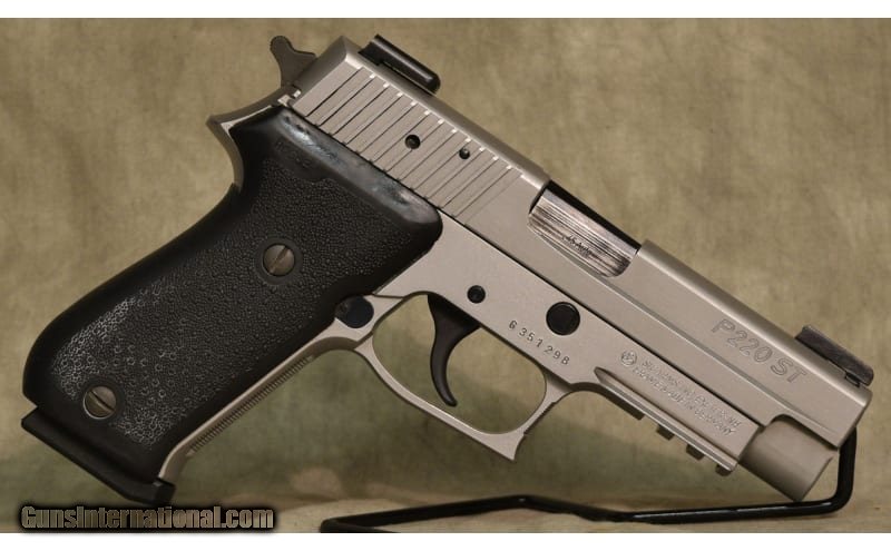 Description: Sig Sauer P220 ST in very good condition chambered in .45 Auto. Includes two 8 round magazines, installed TRUGLO sights, factory sights included, and factory hard case. .45 Auto SOLD Metal Condition: Very good Bore Condition: Bright Barrels: 4 Sights: TRUGLO fiber/tritium Item Location: Chesterfield, MI |