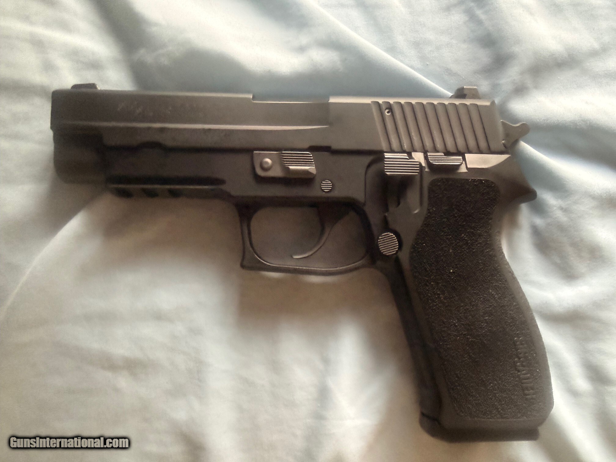 CALIBER 45 Auto PISTOL SIZE Full-Size MAGS INCLUDED 3 Mags SIGHTS SIG Lite Day/Night Sights OPTIC READY Yes SIGHT RADIUS 6.3in [160 mm] SLIDE FINISH Nitron® SLIDE MATERIAL Stainless Steel ELECTRO-OPTIC INSTALLED No TRIGGER ACTION Double Action / Single Action (DA/SA) TRIGGER TYPE DA/SA with SRT FRAME FINISH Black Anodized FRAME MATERIAL Alloy GRIPTYPE E2 GRIP COLOR Black ACCESSORY RAIL Yes FCU MATERIAL Black Anodized BARREL LENGTH 4.4 in [111.76 mm] THREADED BARREL No BARREL MATERIAL Carbon Steel OVERALL LENGTH 7.4 in [188 mm] OVERALL WIDTH 1.3 in [33 mm] HEIGHT 5.5 in (140 mm) WEIGHT 30.4 oz [862 g] This is a used item. While we do not test-fire our used firearms, we perform an inspection and function check to ensure that they are fully functional to the best of our ability. Layaway: 1/3 down, 90 days Shipping $30 Insurance is an extra that must be requested and paid for by the buyer 3-day inspection period for non-firing or disassembly Payment: Personal Check, Money Order, Cert. Check, or Zelle 20% restocking fee on all returned items randywine2000yahoo (703) 858-2881 Handgun Caliber: .45 ACP (.45 Auto) Manufacturer: Sig Saur Model: P220R Serial Number: 37B014019 Barrel Length: 4.4 Condition: LNIB Metal Condition: Excellent Plus Wood Condition: N/A Bore Condition: Excellent Plus Barrel Type: Stainless Steel Nitron Coated Action: Double Action / Single Action (DA/SA) Triggers: DA/SA with SRT Finish: Nitron Weight: 30.4 oz [862 g] Sights: SIG Lite Day/Night Sights Manufacture Date: 2014 Extras: 3 Magazines Case: Factory Hard Case Grips: One Piece Polymer Grip Optic: Optic Ready Price: $1,199.00 Buy Now Contact Seller |