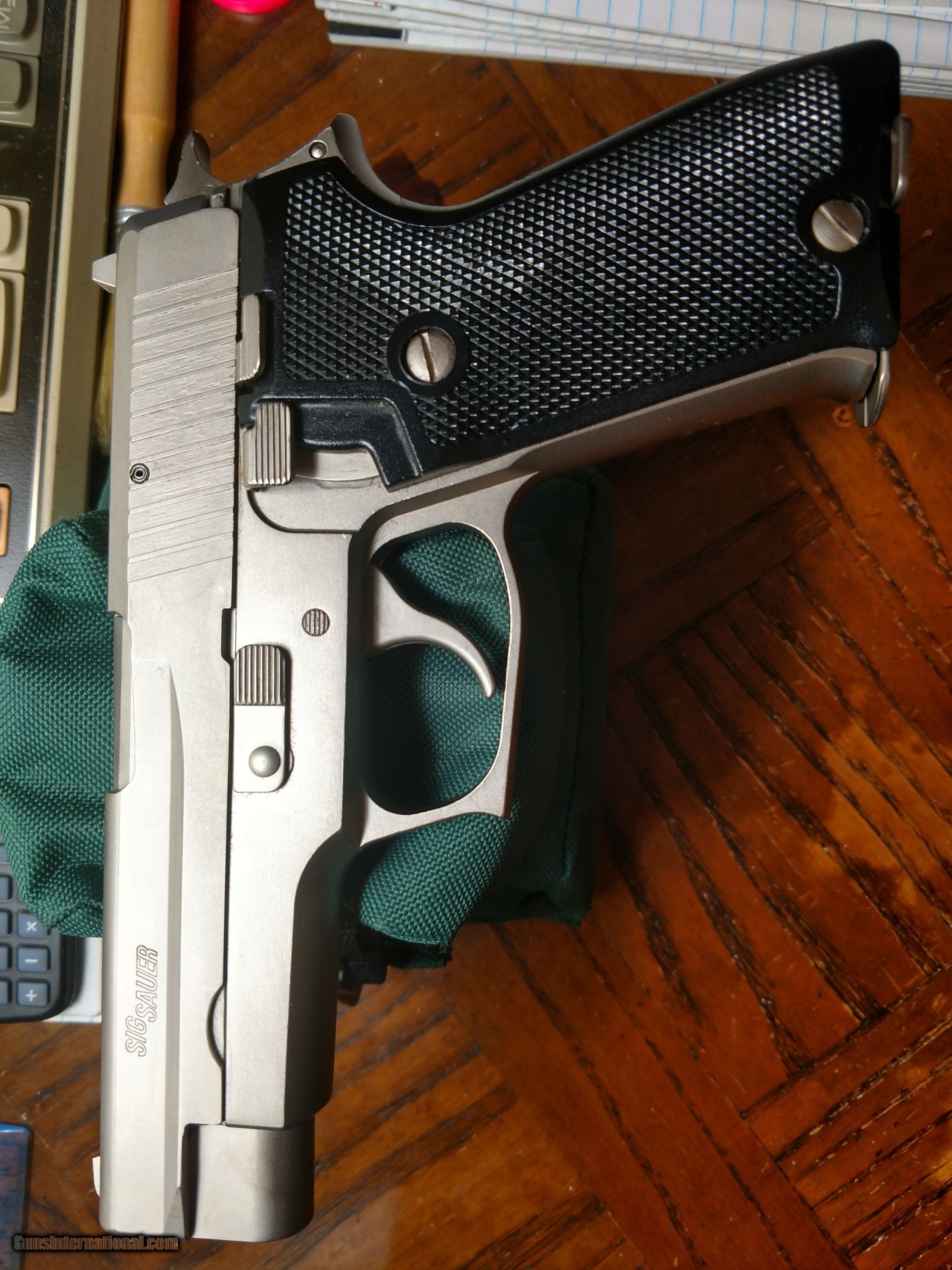 Description: SIG SAUER MODEL P220, 9MM, full size w/4 1/2" barrel, double action, 2-9 round magazines, beautiful matte stainless steel finish w/black checkered grips in perfect condition, decocker, red dot sights, bore glossy and bright, factory blue cardboard box w/red velveteen cushioned lining, slot for extra magazine and owner's manual. Pistol was made in 1985 in either West ft ft CT ft ftGermany or Switzerland. (I am not sure which). There are proof marks imprinted on bottom of barrel; owner's manual was printed in Switzerland; another proof mark on right side of frame; J. P. Sauer's address o owner's manual. Pistol in spectacular condition reflecting evidence of discerning care during it's 35 year life. THE REAL DEAL!! The price is $1350 including 2-day FedEx shipping to the FFL of your choice within the lower 48 states. If interested, please call or text at 318-780-4242 SOLD Handgun Caliber: 5.45x18mm, 9x19mm Parabellum (9mm Luger, 9x19mm NATO) Manufacturer: Sig Sauer Model: P220 Serial Number: G134870 Barrel Length: 4.5 Condition: Excellent, like new Metal Condition: Perfect Bore Condition: Flawless Action: Semi-automatic Finish: Matte stainless steel Sights: red dot Manufacture Date: 1985 Case: factory cardboard box Item Location: Shreveport, Louisiana |