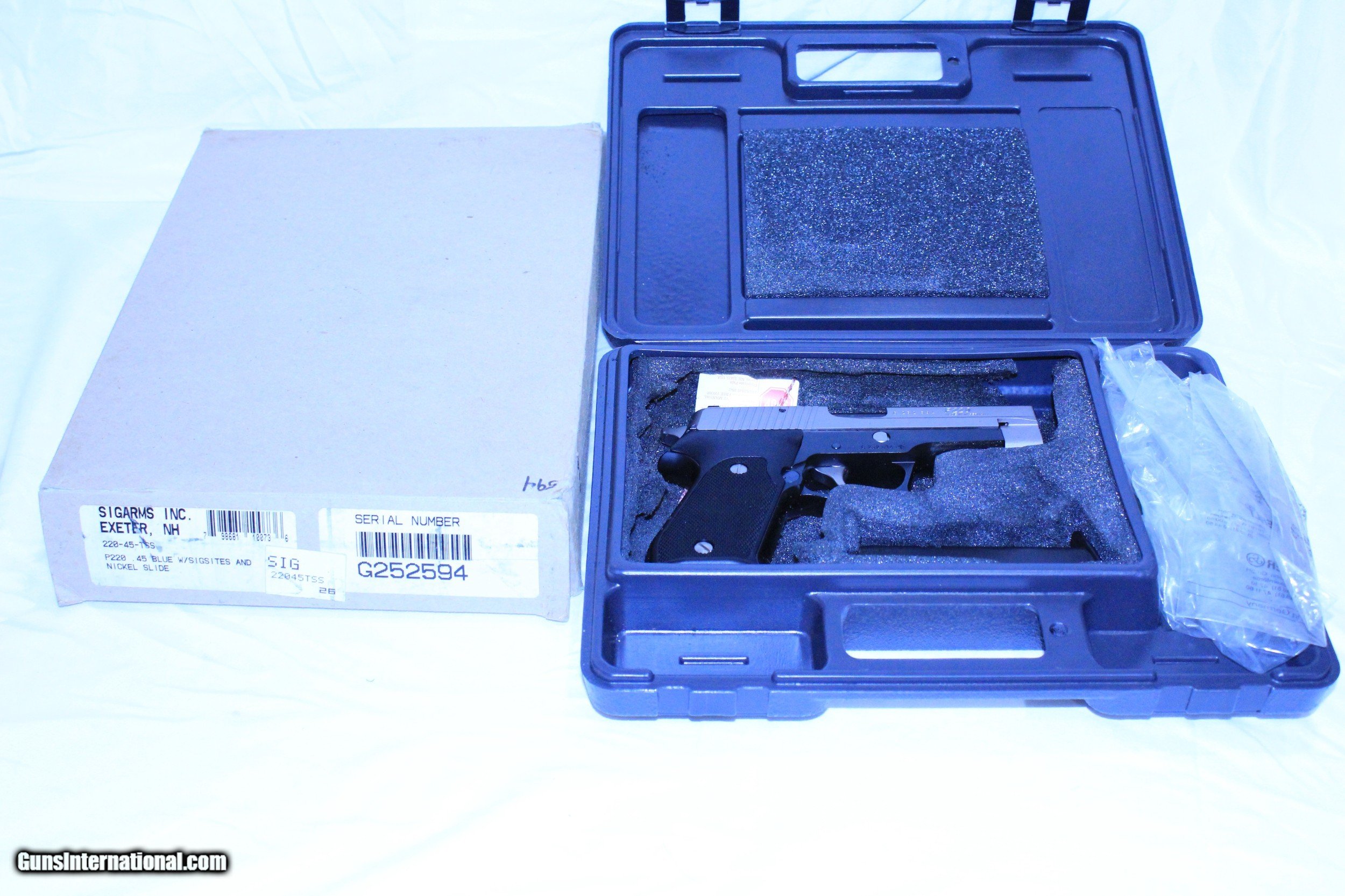 Description: Please Read Complete Description Prior to . Sigarms P220.45 ACP. This pistol features Blue receiver, Nickle Slide (rare) and Sigsites. In good condition, original box. Either unfired or fired very little. Was purchased new and stored in safe since purchased. This gun good condition (see photos). Payment must include shipping and transfer which is about $90 on handguns, ships UPS overnight. Tracking and a receipt will be provided, any differences can be settled once gun ships. No sales to California! Ship UPS, handguns only shipped overnight. Please note I am only able to make shipments on Fridays.The firearm will ship the first Friday after your payment is received. SOLD Handgun Caliber: .45 ACP (.45 Auto) Manufacturer: Sigarms Model: P220 Condition: good Metal Condition: good Bore Condition: Like New |