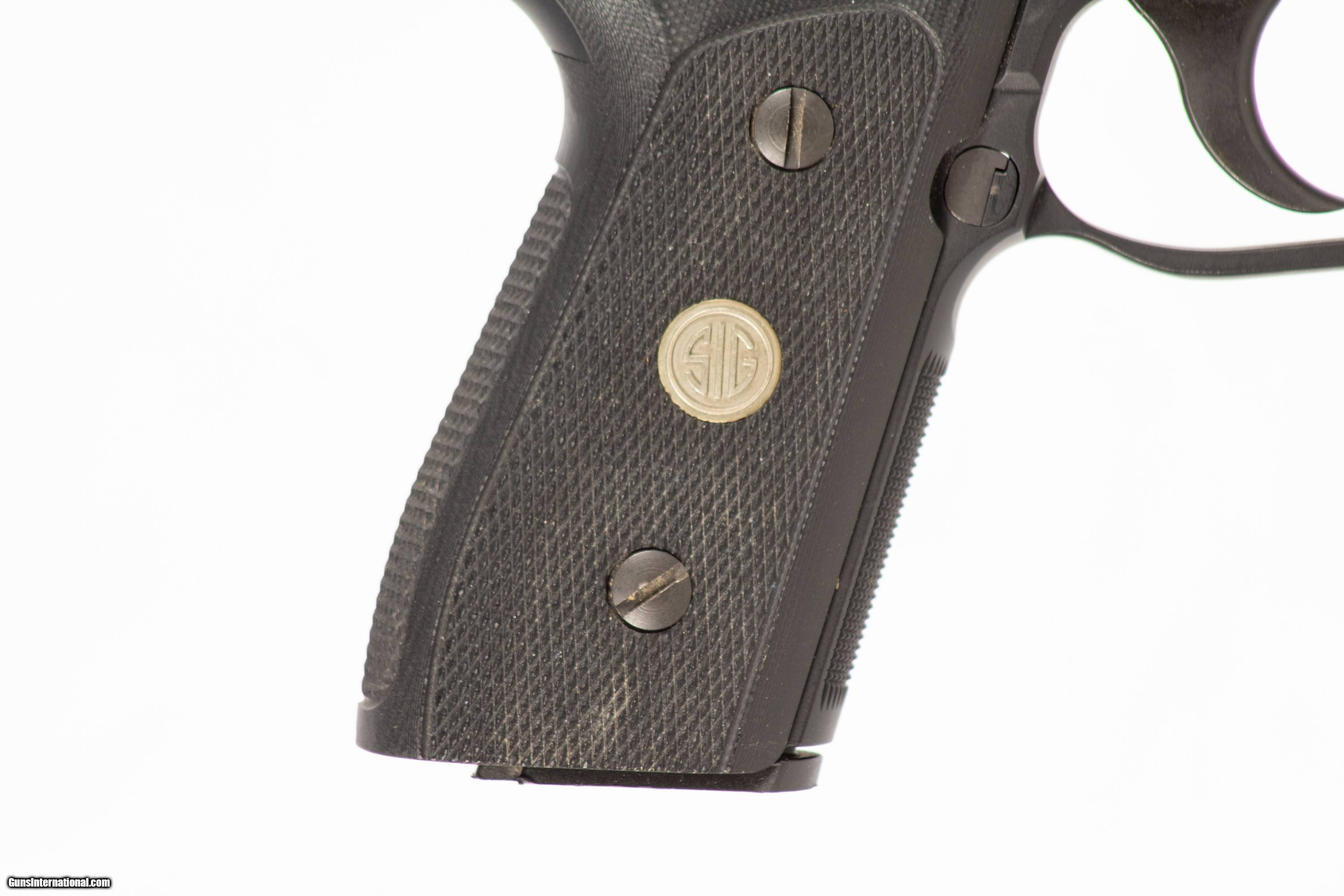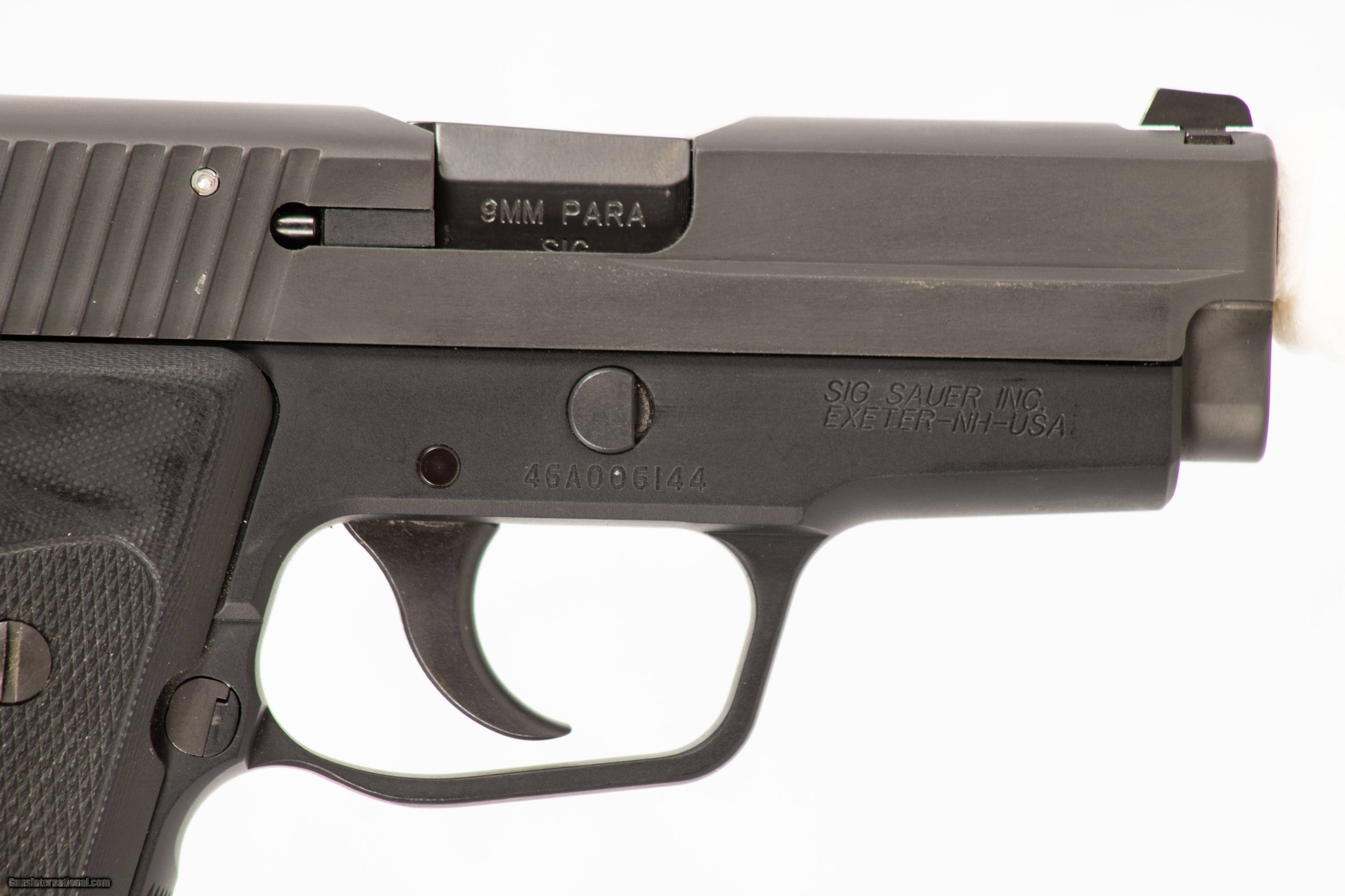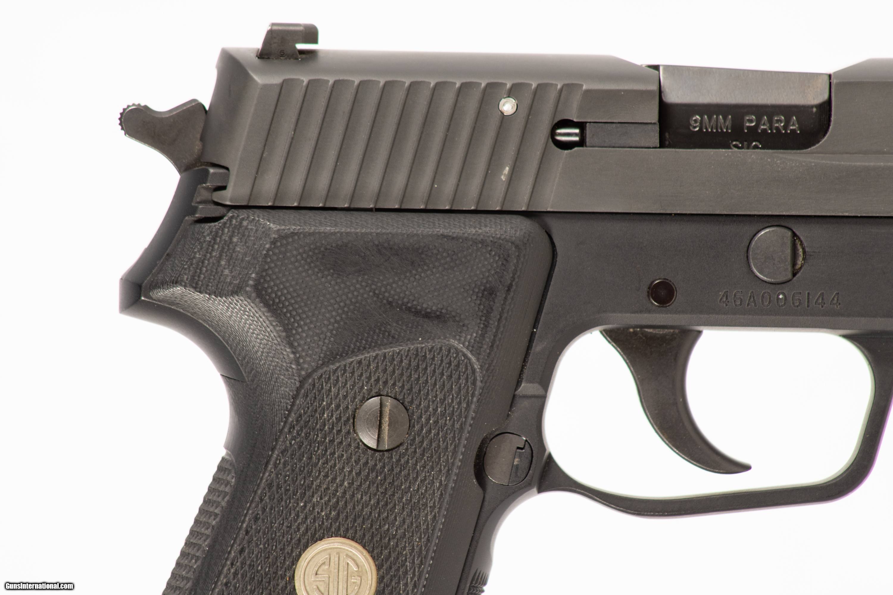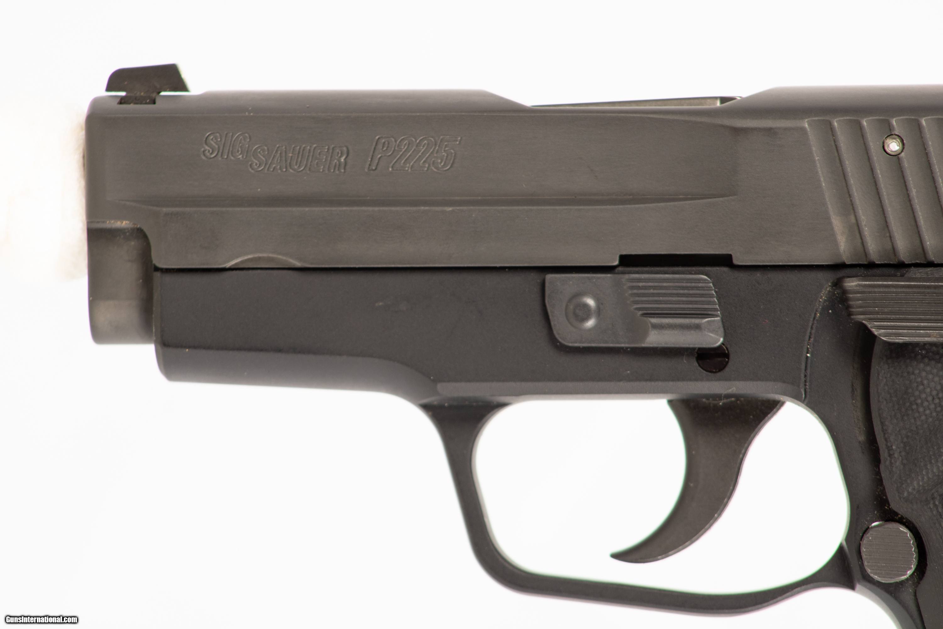 Sig Sauer P225 chambered for 9mm with a 3 1/2 inch barrel bright & shiny bore white dot sights case and 1 extra magazine. This firearm is in excellent condition and is covered by Dury's Lifetime Warranty.