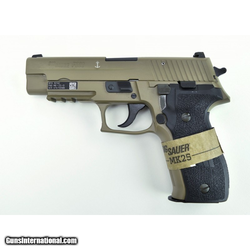 Description: "Sig Sauer P226 9mm Para caliber pistol. MK-25 Navy Version Desert-Tan SOLD |