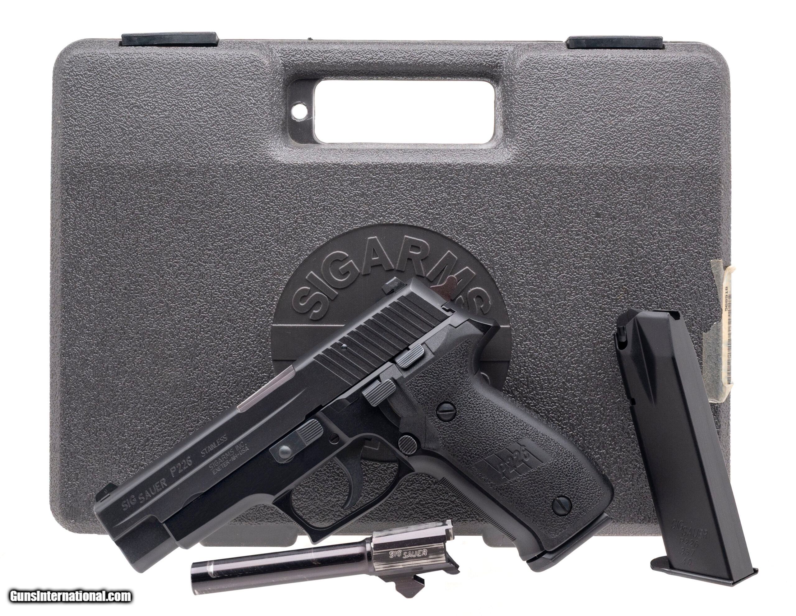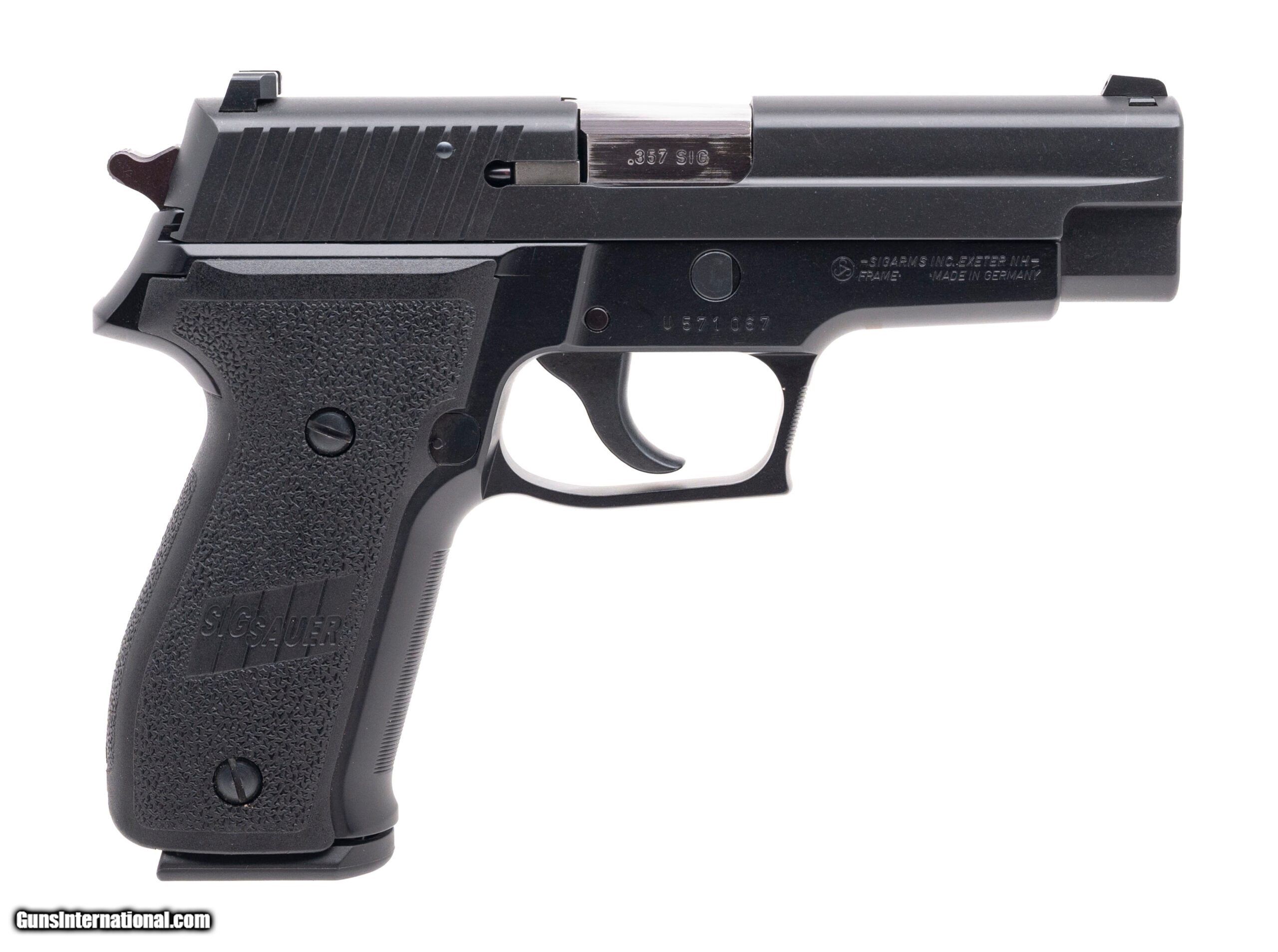 Description: "SN: U571067 German made full size double action semi-auto aluminum frame pistol with 3 dot night sights and a 4.25"" barrel chambered in 357 Sig. Overall in very good condition. Comes with original case and extra barrel chambered in 40 S&W. Price: $895.00 Contact Seller |