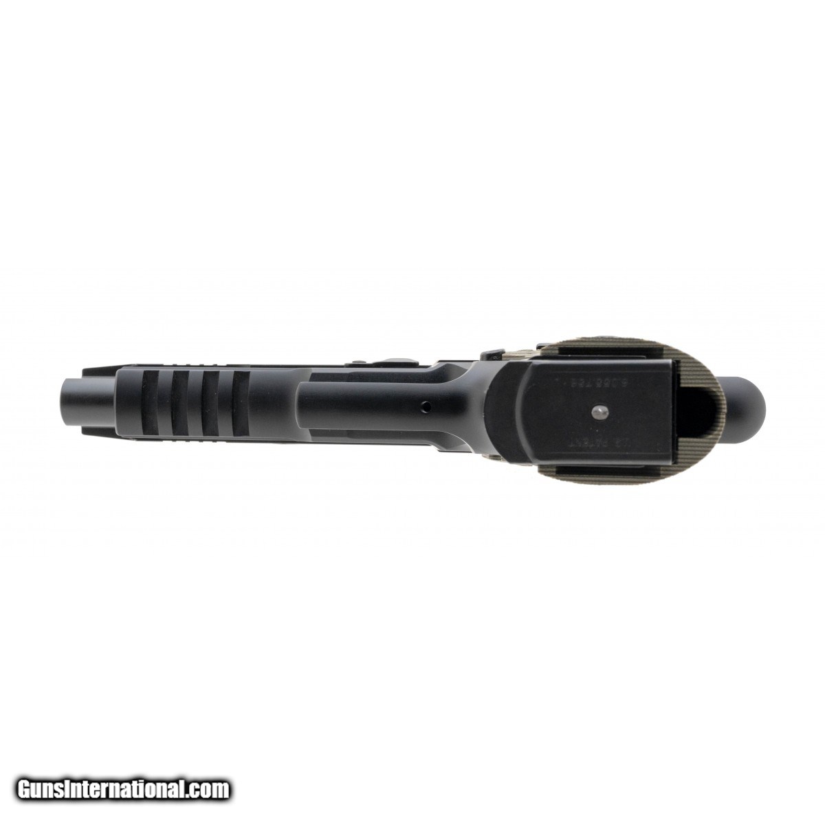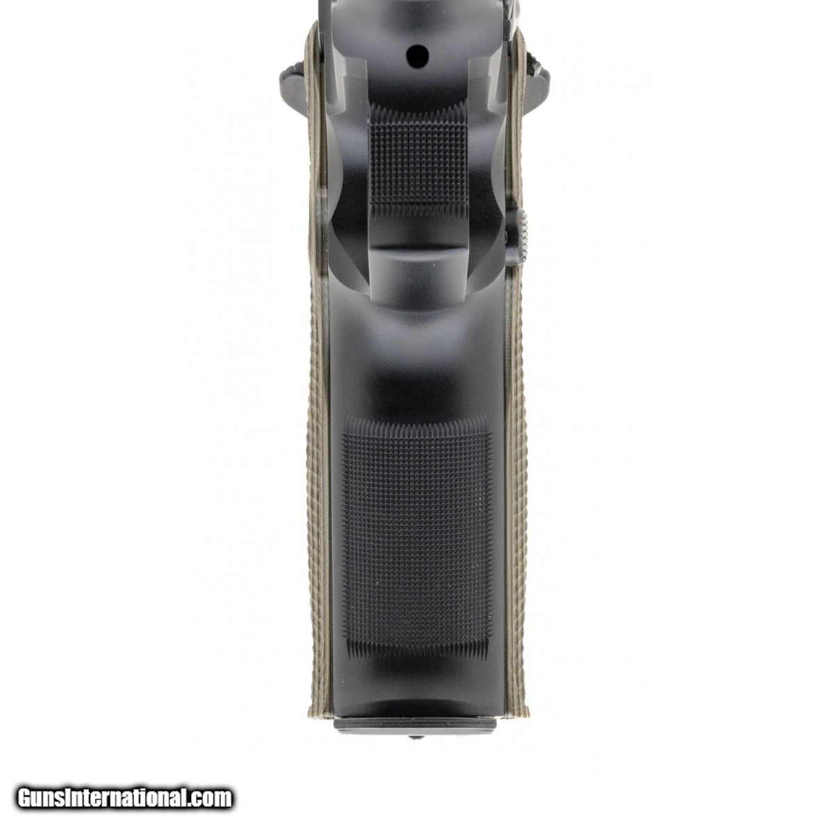 Description: " SN: U887941. Circa 2012. 9x19 parabellum with a 5"" barrel, bore is excellent. German competition model handgun, single action, M1913 accessory rail, red fiber optic front sight, adjustable rear sight and Hogue G10 Piranha grips. Overall condition is excellent. Comes with box and grease. SOLD |