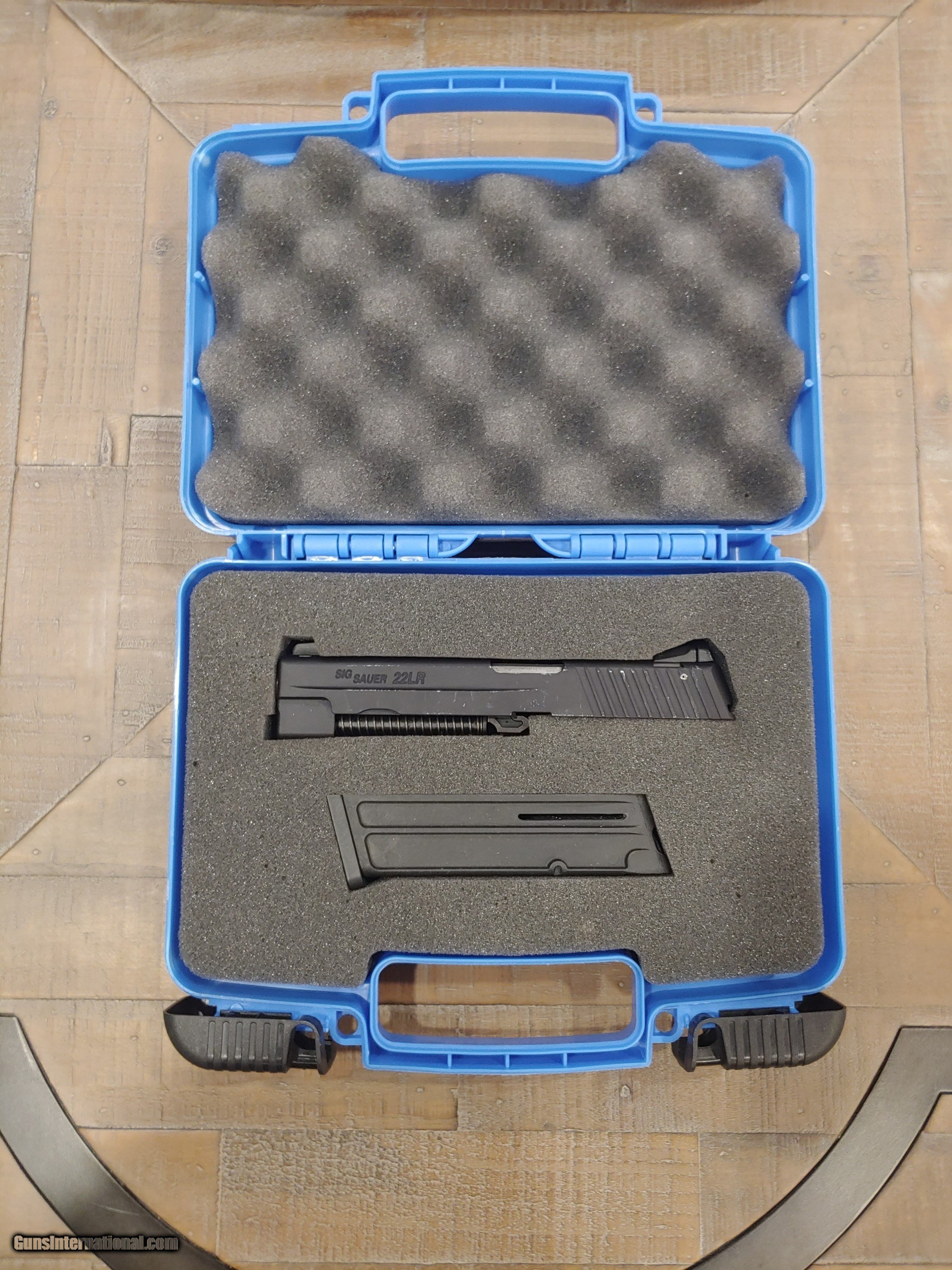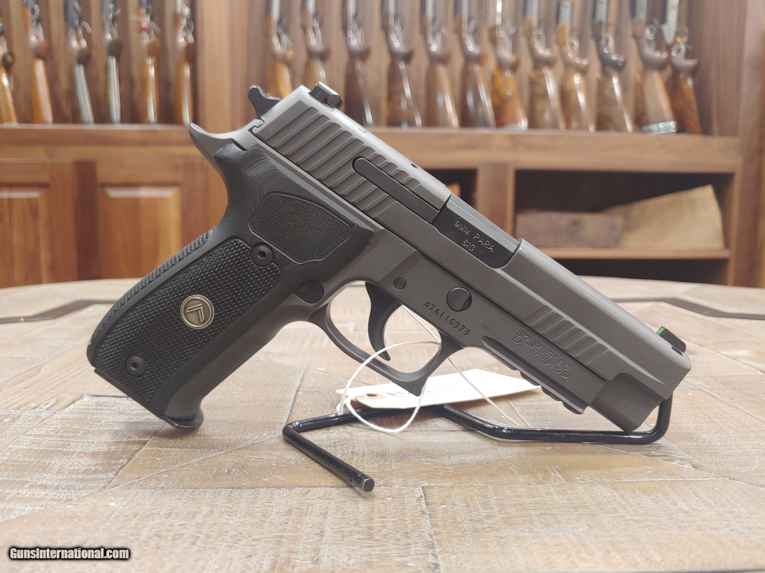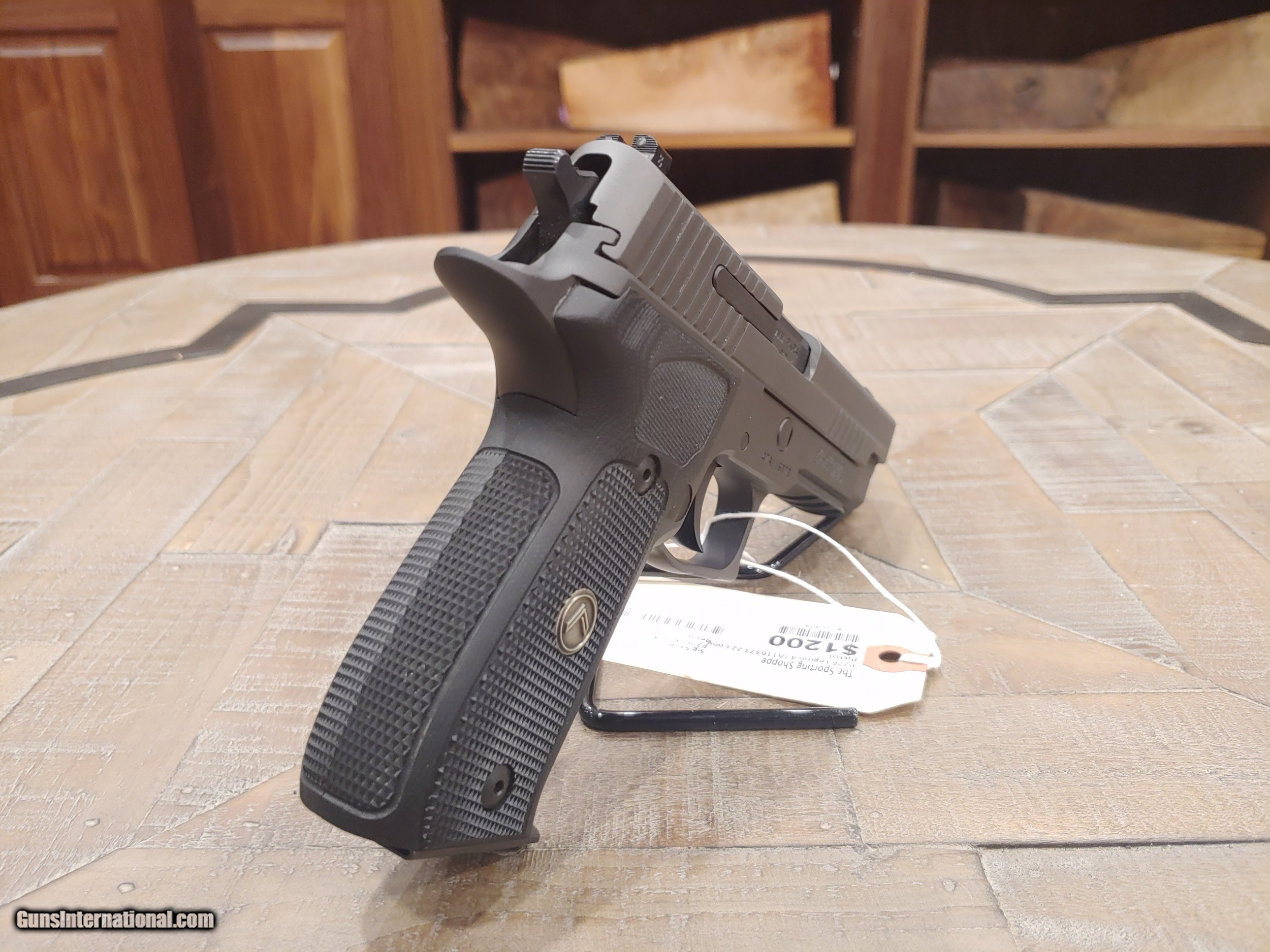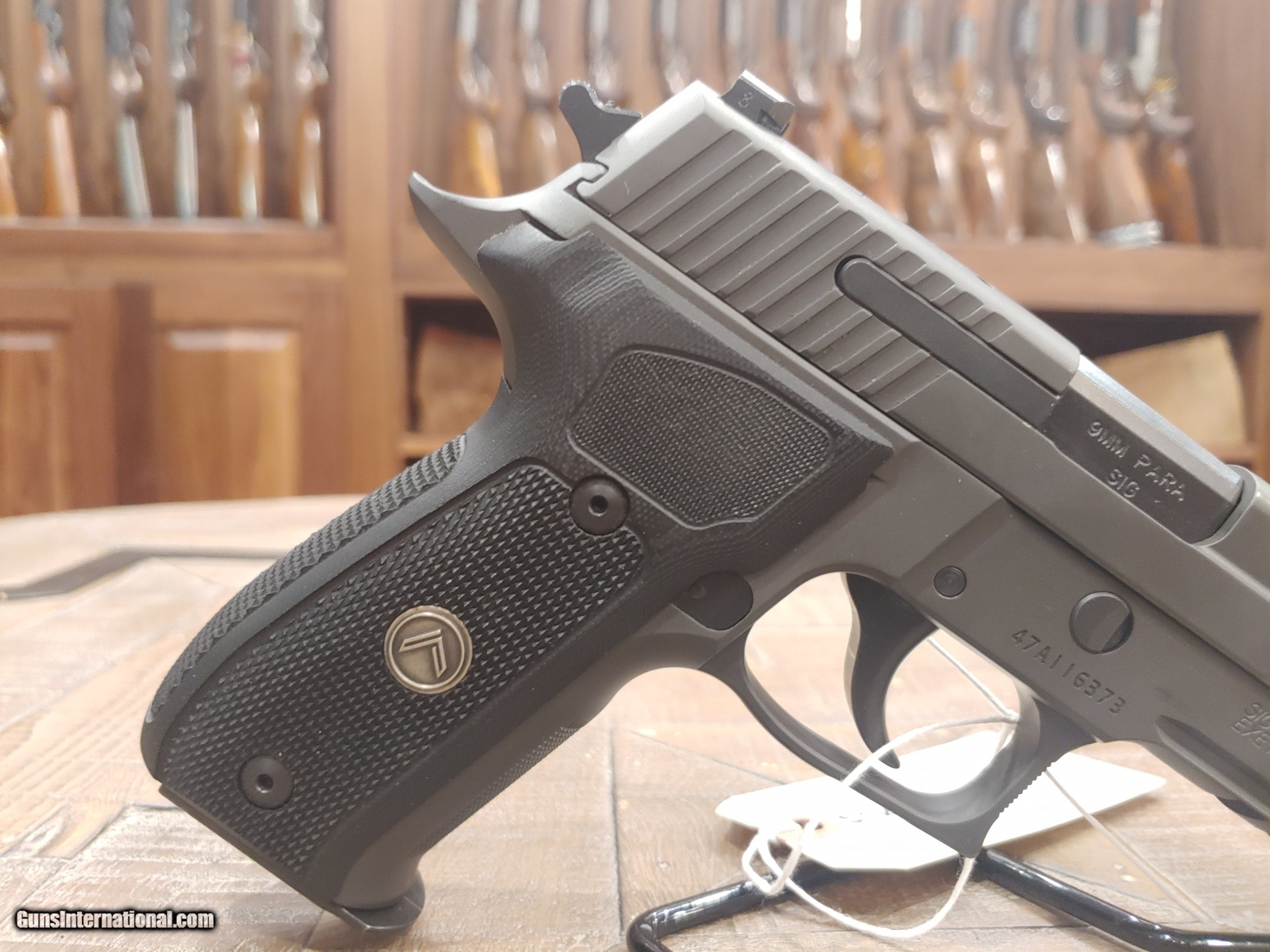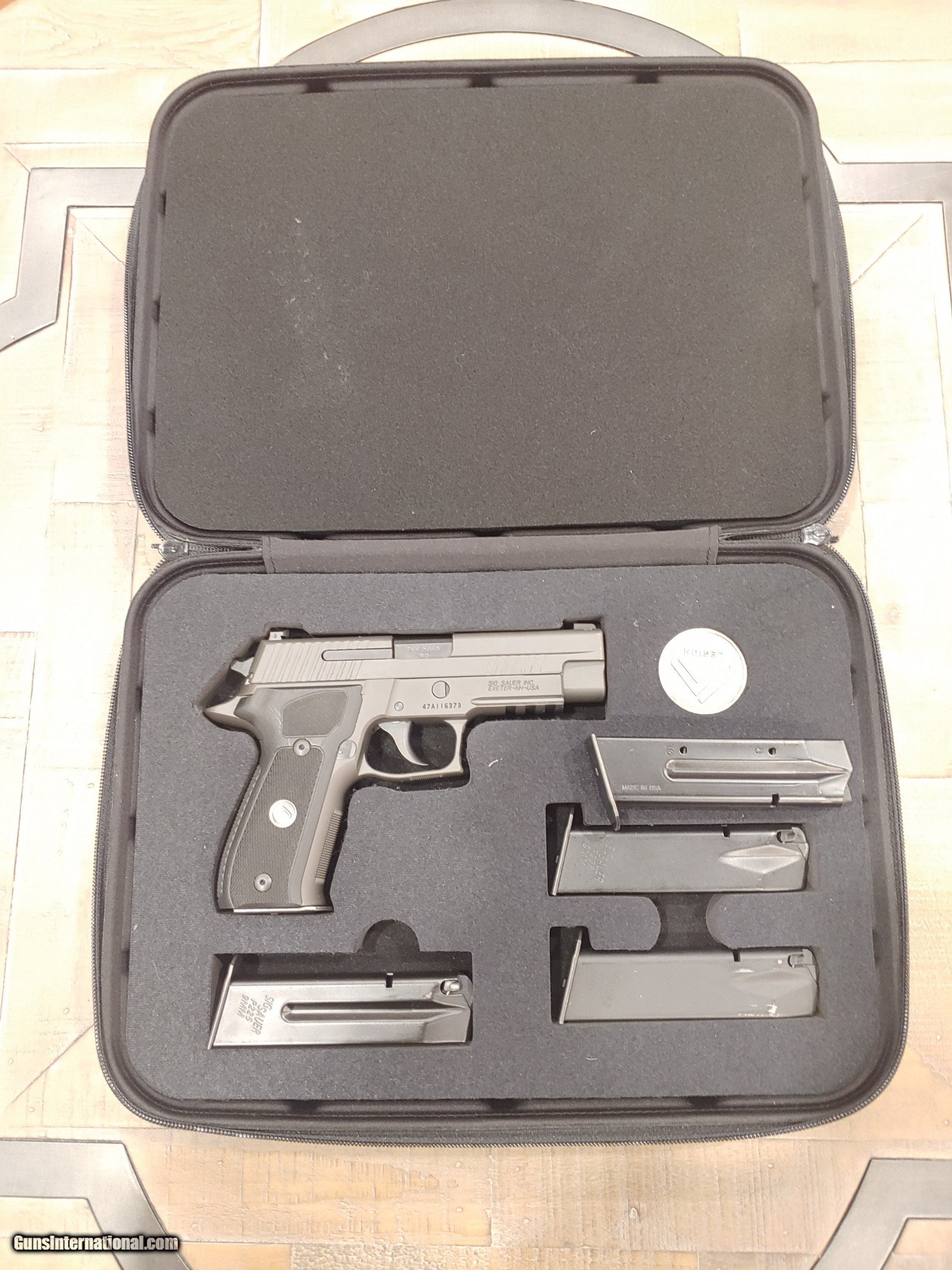 Description: This Sig Sauer P226 Legion is a 4.25" 9mm semi-automatic handgun with an overall length of 8" and a height of 5". The gun features an under-rail and night sights. Comes with 5 magazines, a legion case, and a .22 LR barrel conversion kit. Besides some handling marks on the slide, this gun is in great condition.