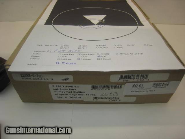 Description: I have a P226 S Xfive tactical MADE IN GERMANY. SAO pistol with 5 19rd Sig German mags. Two cases, all paperwork and a Sig German Xfive poster. CC+3.5% zel, money orders, Cerfified bank check. FREE SHIPPING TO LOWER 48!! SOLD Handgun Caliber: 9x19mm Parabellum (9mm Luger, 9x19mm NATO) |