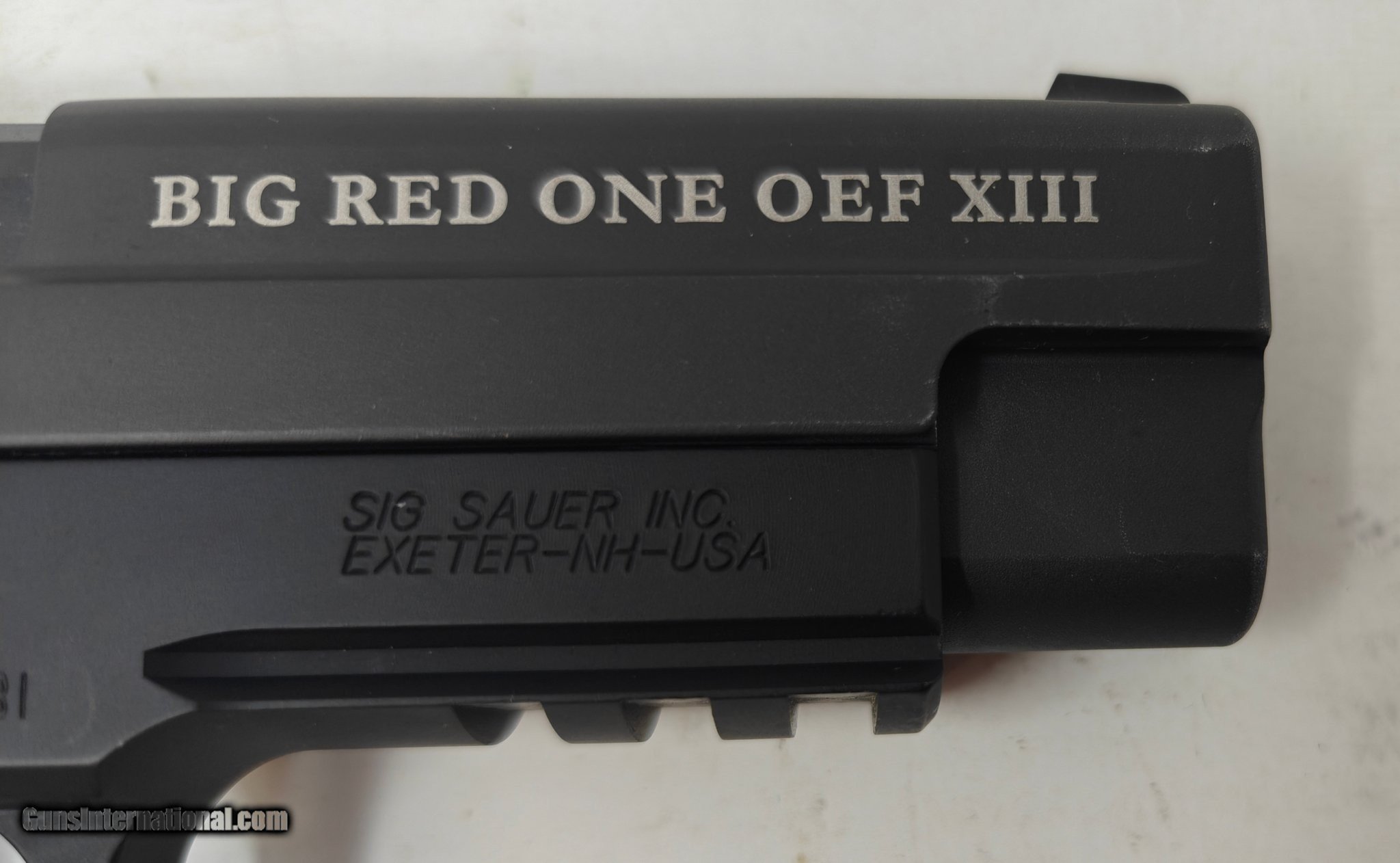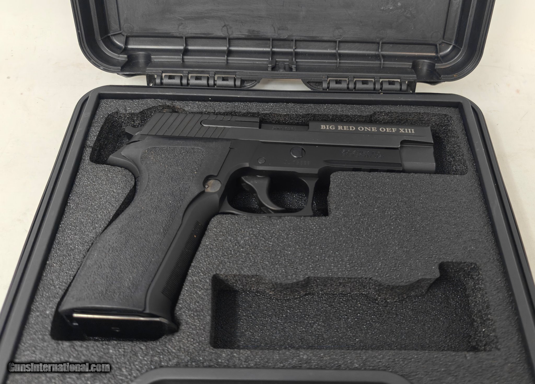 Description: Guns Listing ID: 574792 RARE & EXCELLENT Condition Big Red One OEF XIII Regional Command East Combined Joint Task Force-1 (See pics of top and side of the slide) Comes with Box & 1 magazine \"Big Red One\" (1st Infantry Division) and Operation Enduring Freedom (OEF) XIII. The \"Big Red One\" is the nickname for the 1st Infantry Division of the US Army, and OEF XIII likely denotes the period between 2012-2013 when they were deployed to Afghanistan and/or the 13th major rotation or deployment period of OEF forces in Afghanistan. SOLD Manufacturer: SIG SAUER Model: P226 Caliber Info: 9MM LUGER (9x19 PARA) Condition: Used - Non-Certified Barrels: 4.4" BARREL Action: SEMI AUTOMATIC Finish: black |