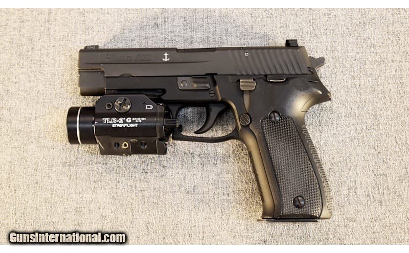 Description: This is a pre-owned Sig Sauer model P226, the MK25 model, in 9mm l-Luger with a Streamlight TLR-2 light 9mm Luger Metal Condition: "Very good overall with a few small scratches, a few small rub marks and moderate wear to the finish of the barrel Wood Condition: Very good with light handling wear Bore Condition: Clean with good lands Barrels: 4.5 Triggers: DA/SA Butt Pad: Checkered G10 Weight: 2 Lbs. 4 Oz. Sights: 3-dot night sights with day/night front plus a Streamlight TLR-2 green laser light Item Location: Glendale, AZ Price: $849.99 Contact Seller |